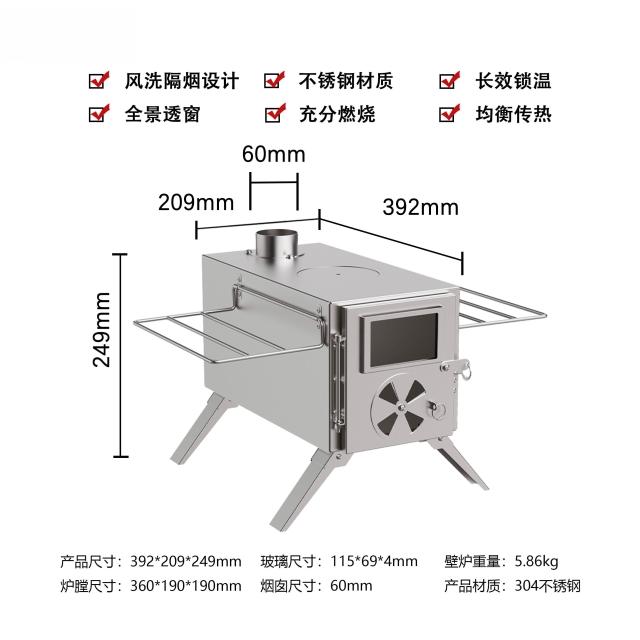 戶外爐野餐竈具露營不銹鋼柴火爐多功能帳篷取暖爐