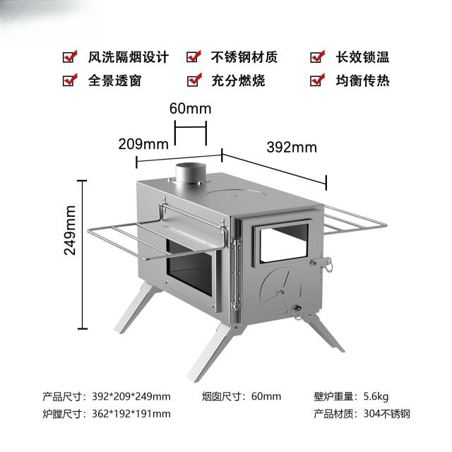 戶外爐野餐竈具露營不銹鋼柴火爐多功能帳篷取暖爐
