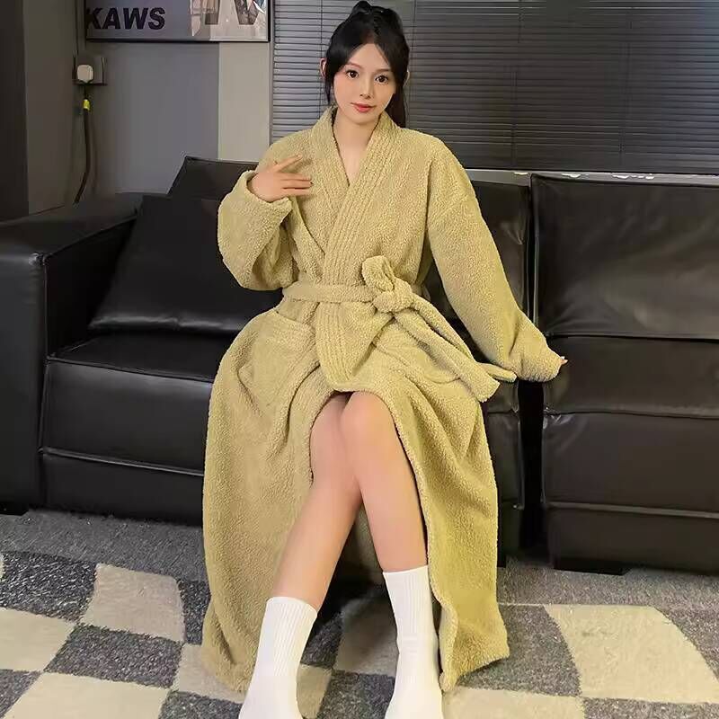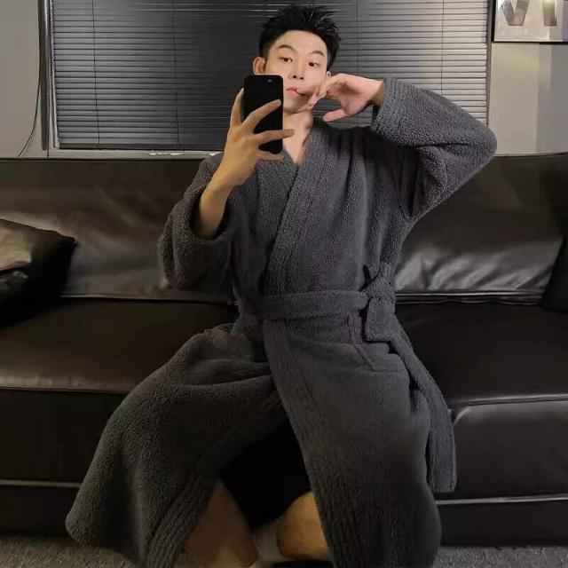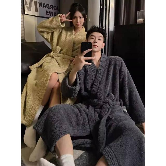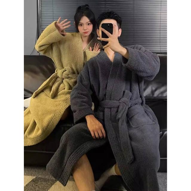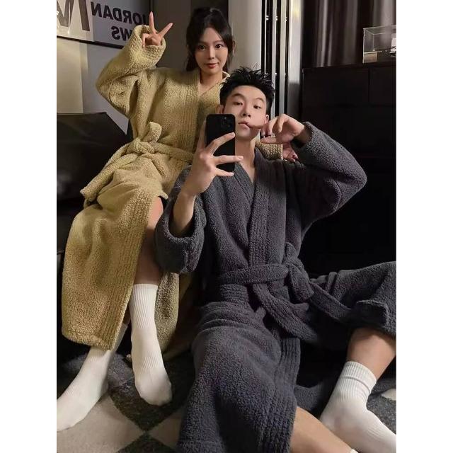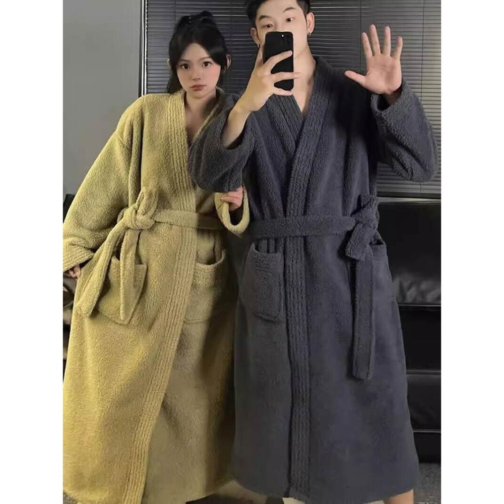 情侶睡袍女冬季珊瑚絨加絨加厚保暖大碼中長款浴袍休閑男士家居服