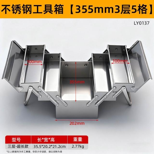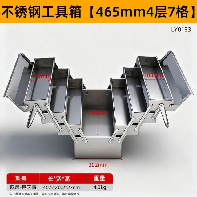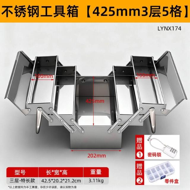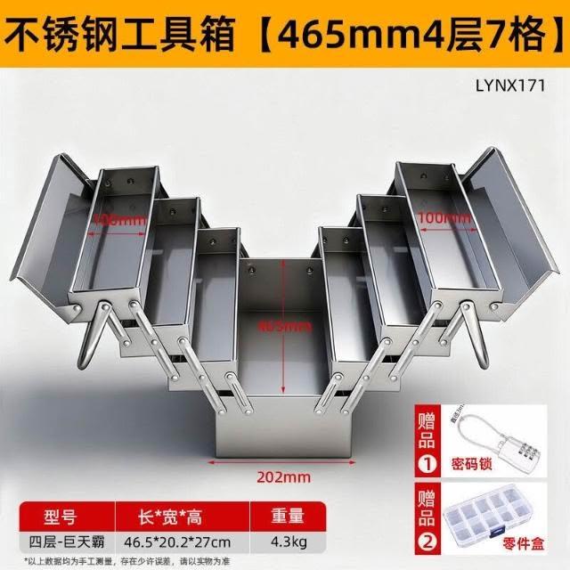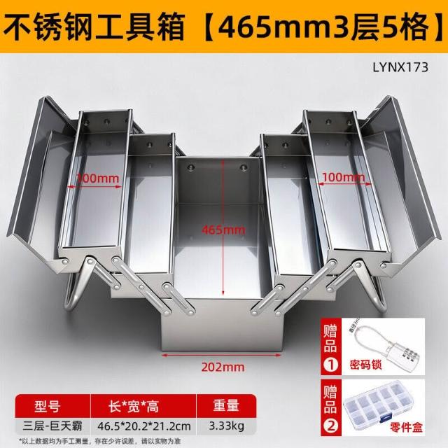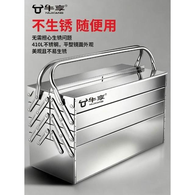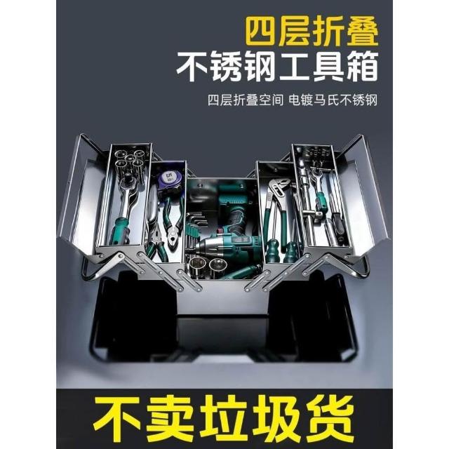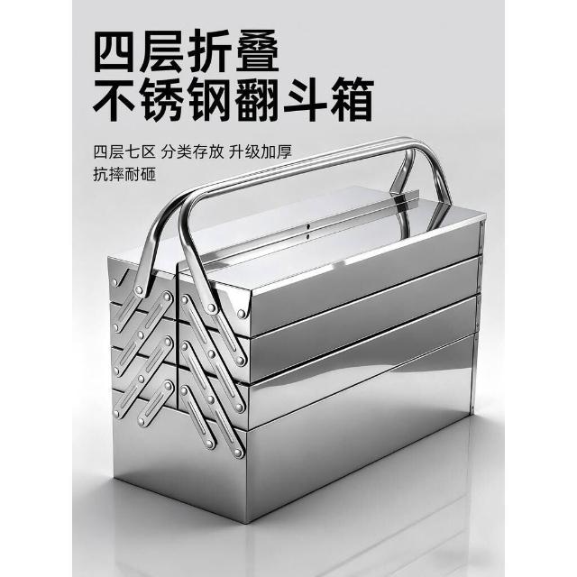 不銹鋼工具箱三層折疊家用加厚手提式五金工業級收納盒多功能