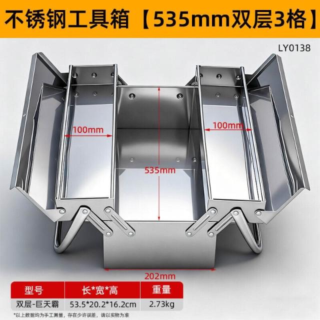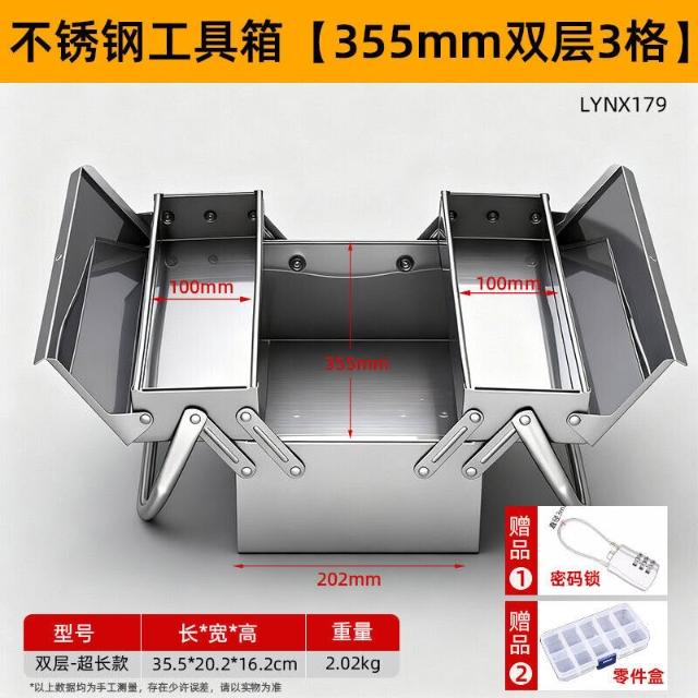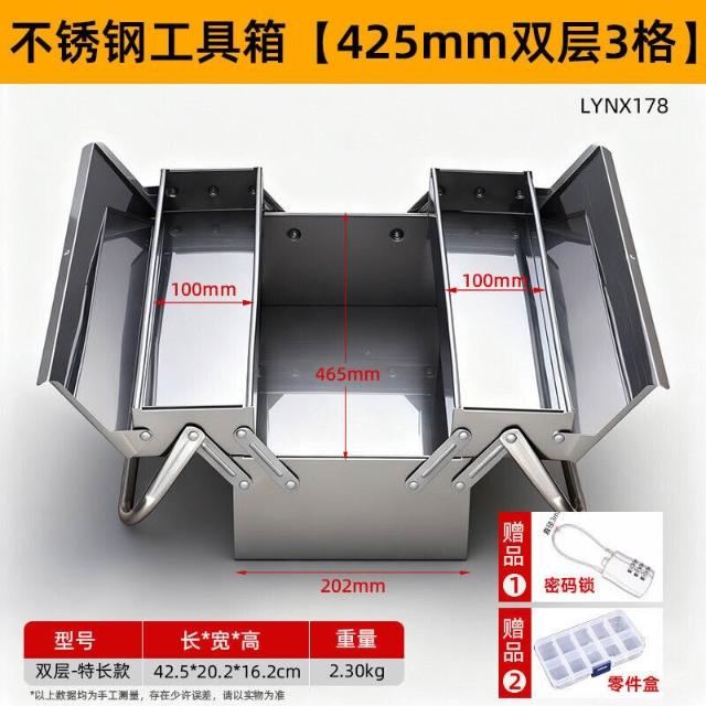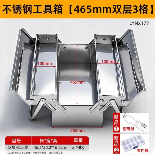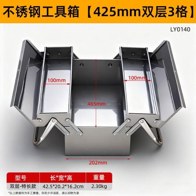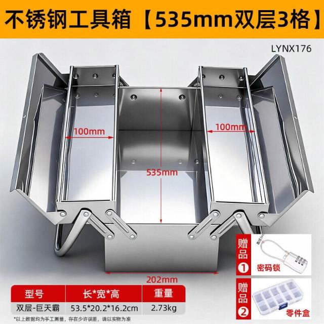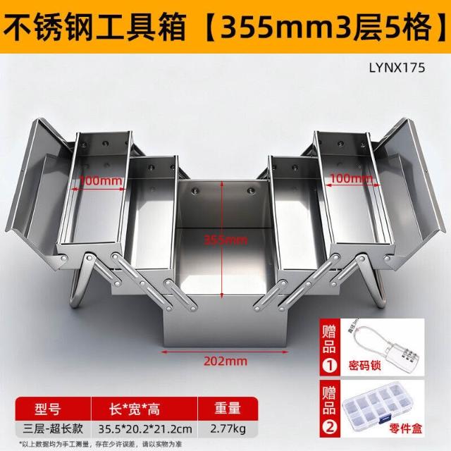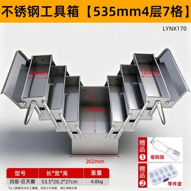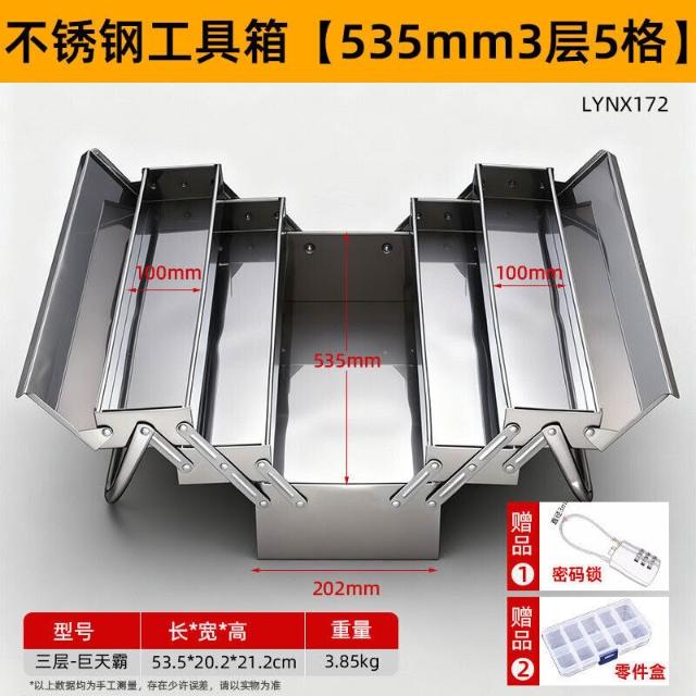 不銹鋼工具箱三層折疊家用加厚手提式五金工業級收納盒多功能