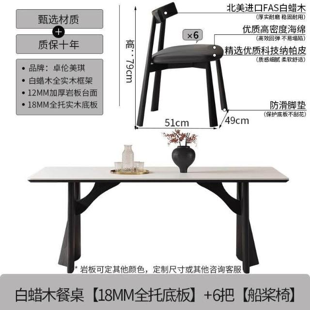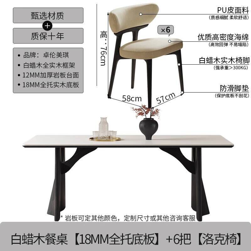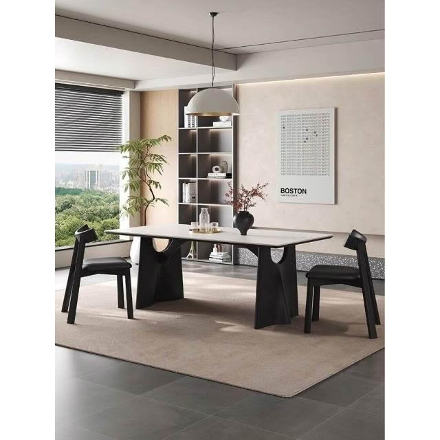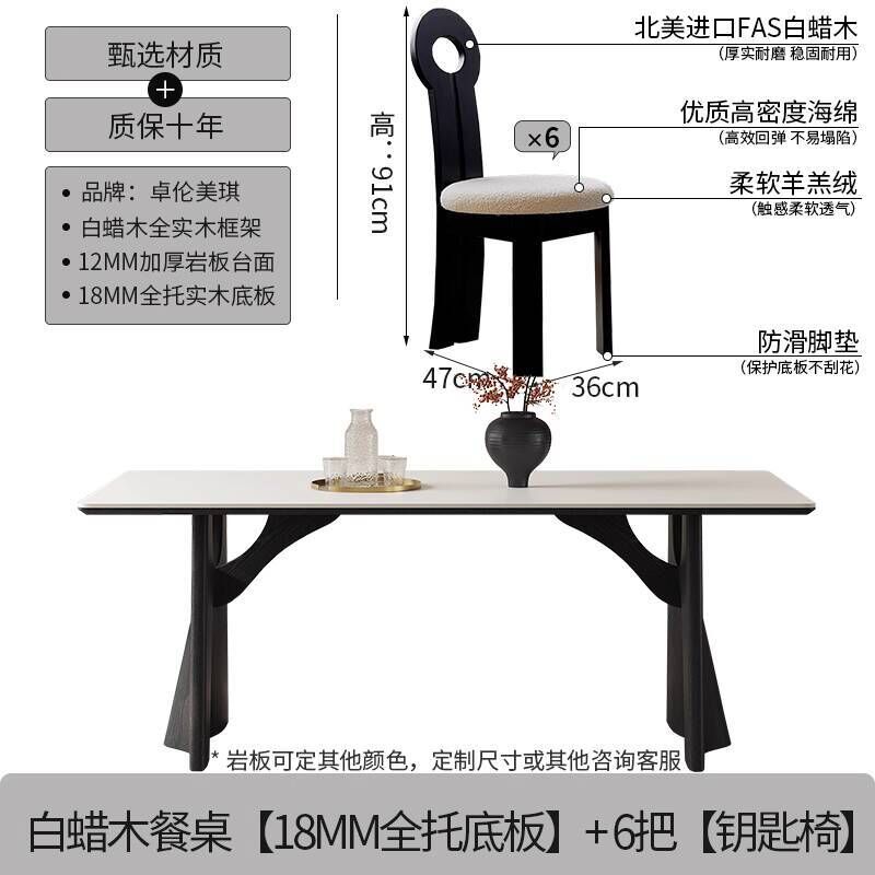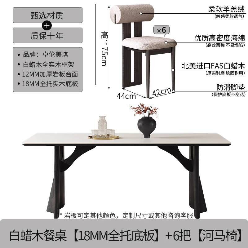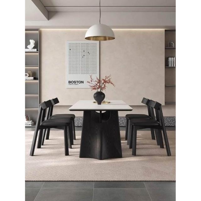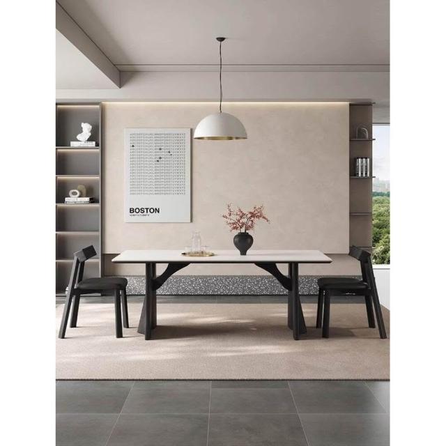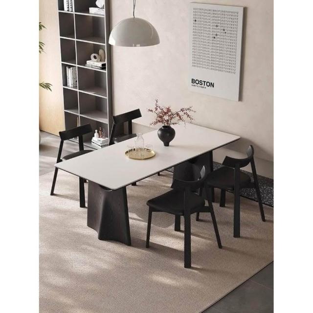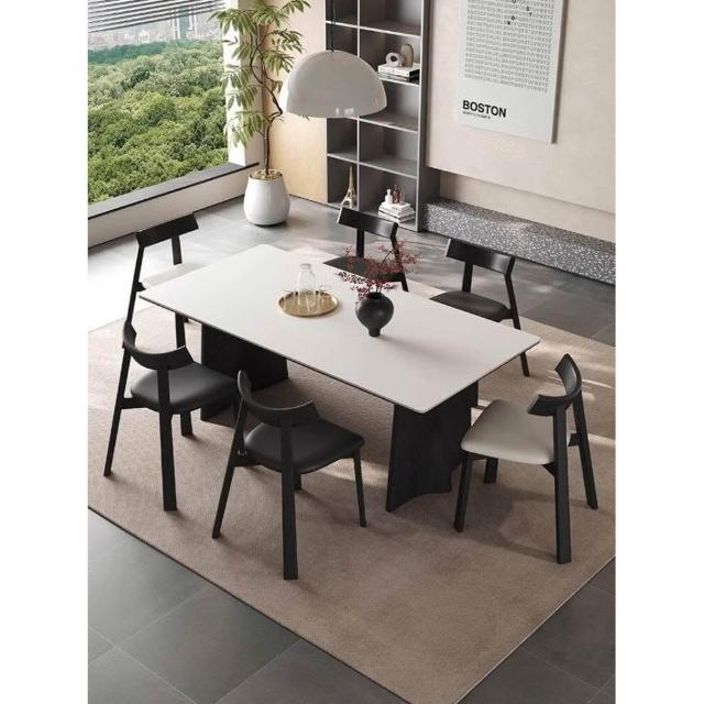 意式極簡巖板餐桌小戶型家用法式侘寂風長方形現代簡約實木餐桌椅