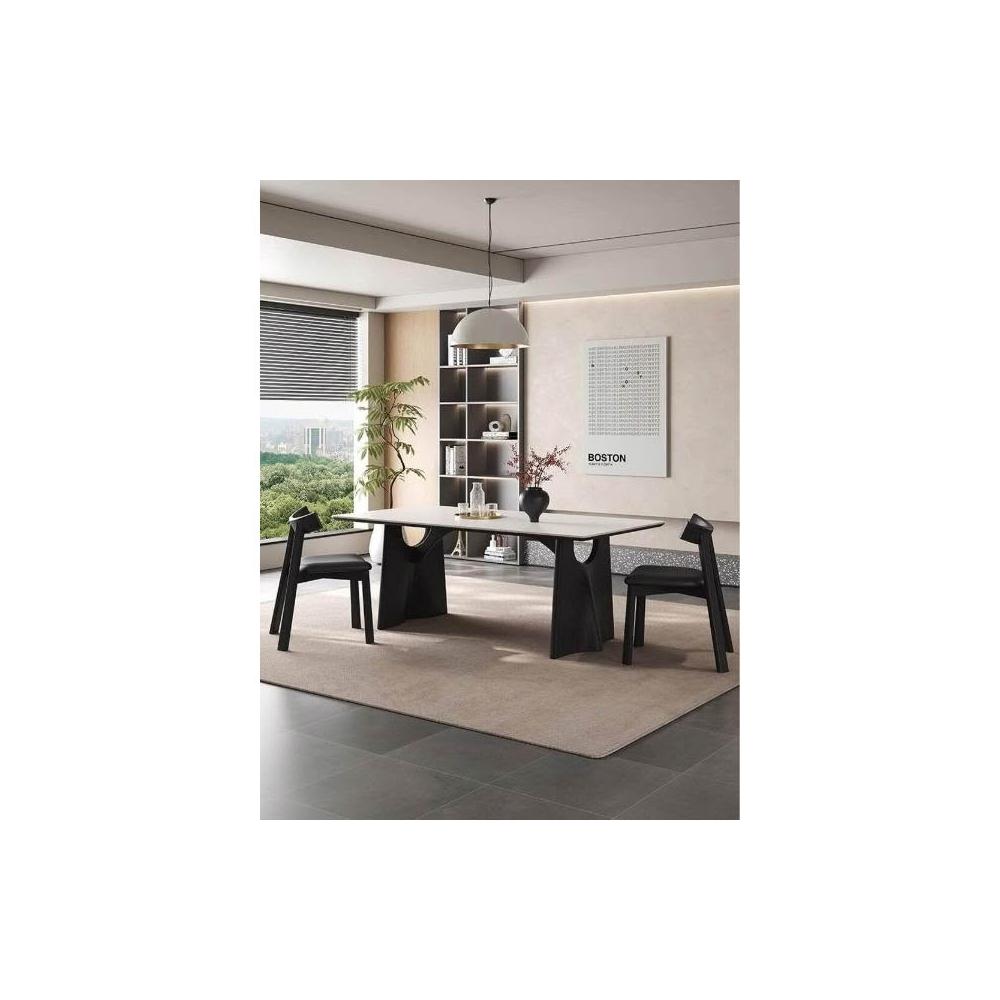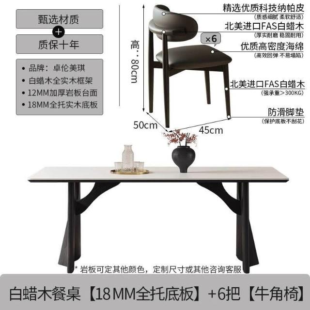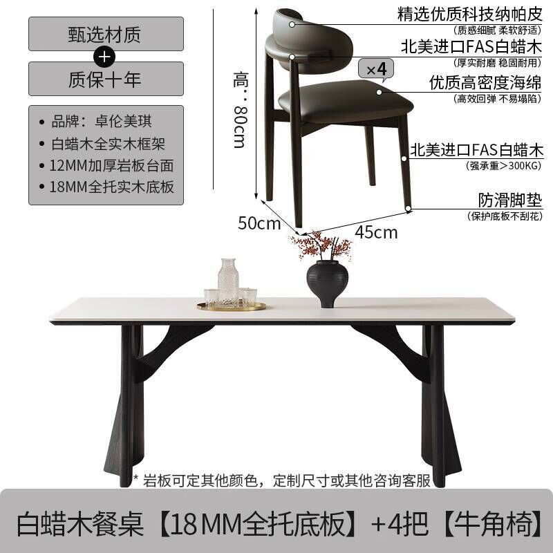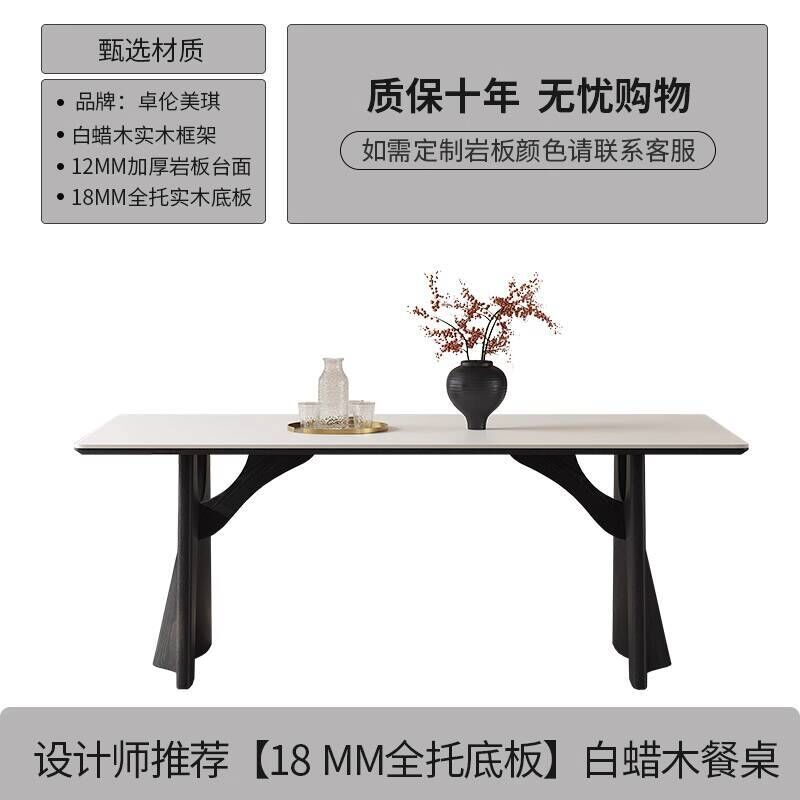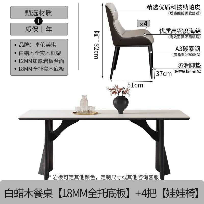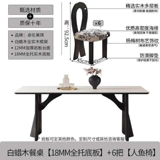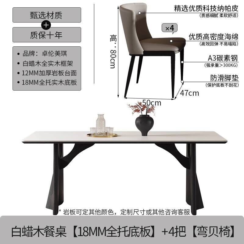 意式極簡巖板餐桌小戶型家用法式侘寂風長方形現代簡約實木餐桌椅