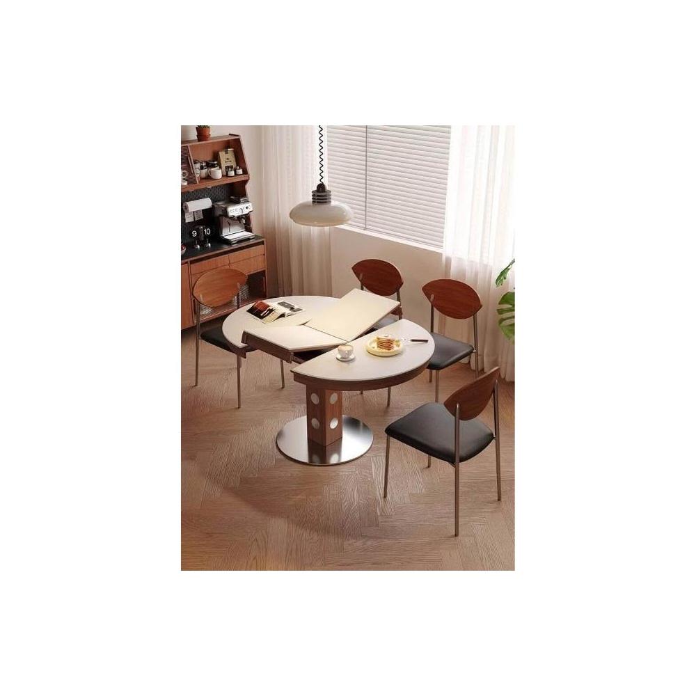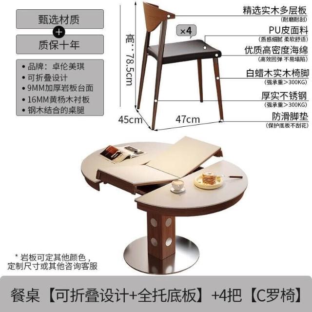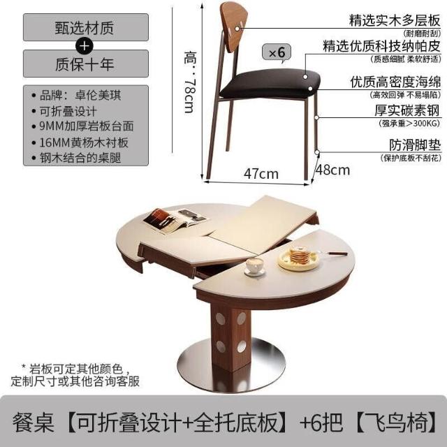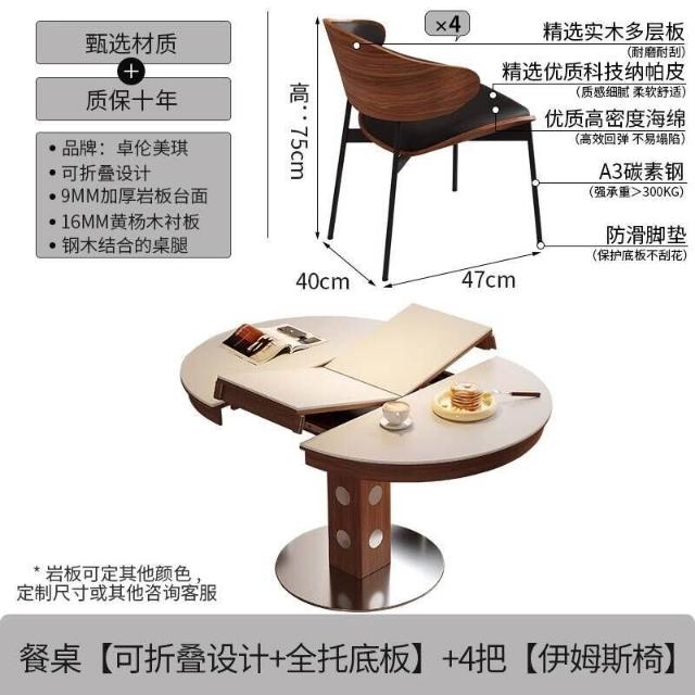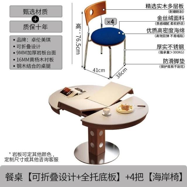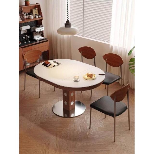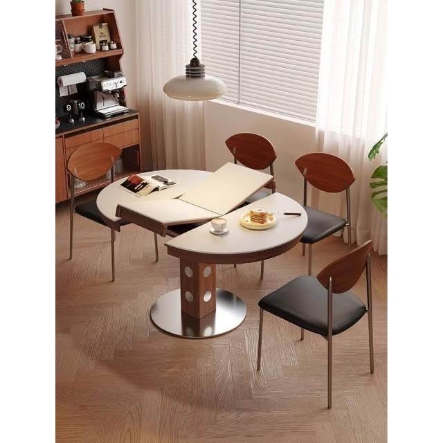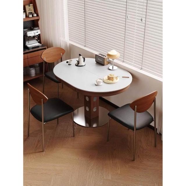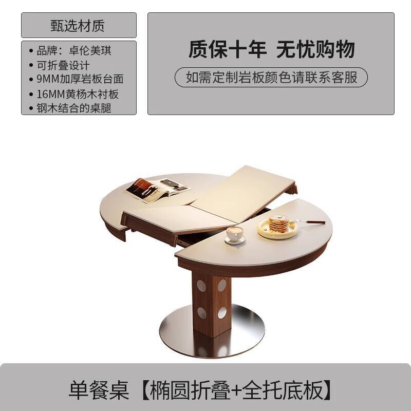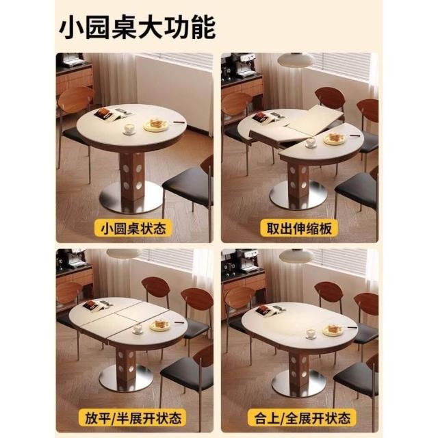 實木巖板餐桌家用小戶型折疊可變圓桌現代飯桌可伸縮餐臺