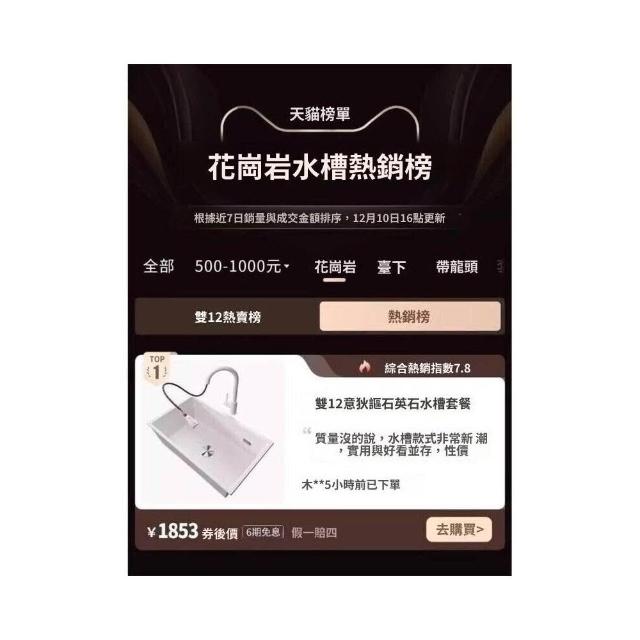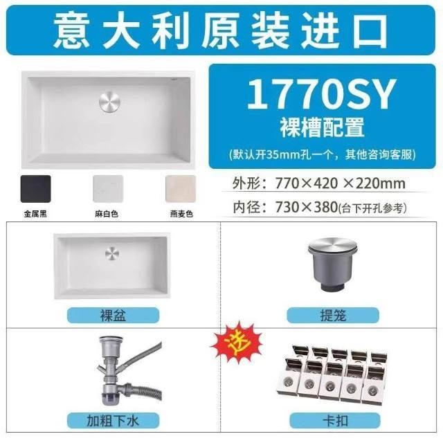 意大利意狄讴石英石水槽廚房洗菜盆大單槽洗碗槽臺下盆水池7176
