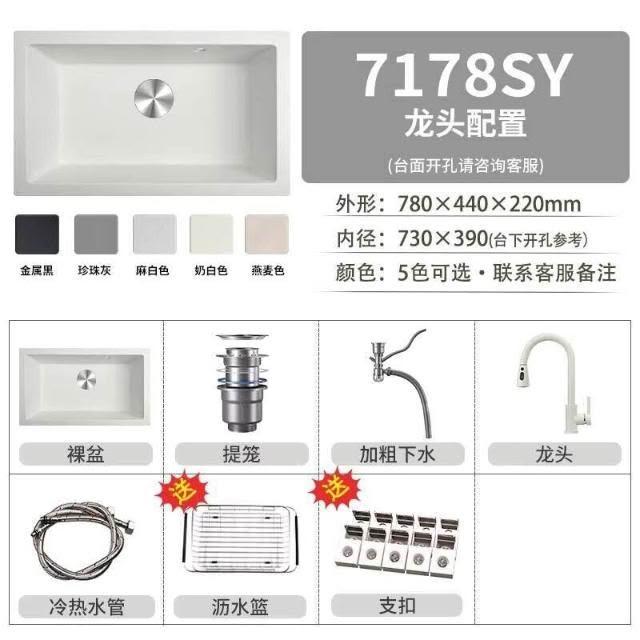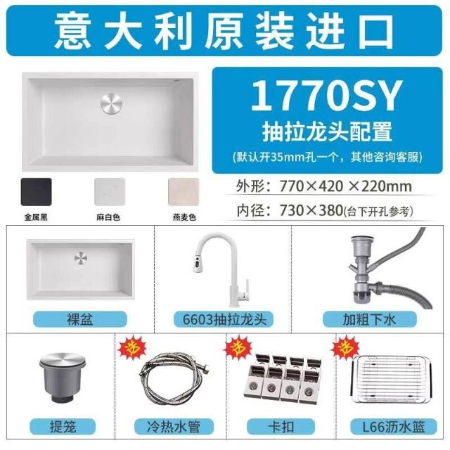 意大利意狄讴石英石水槽廚房洗菜盆大單槽洗碗槽臺下盆水池7176
