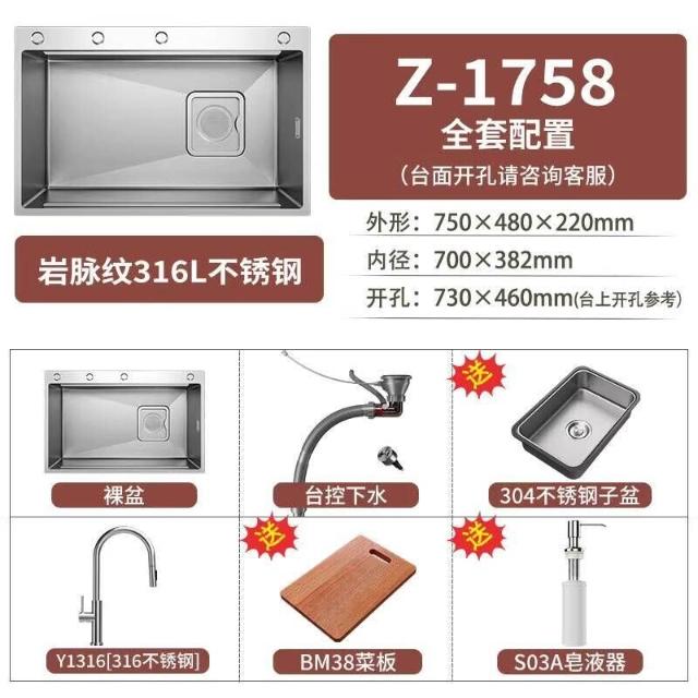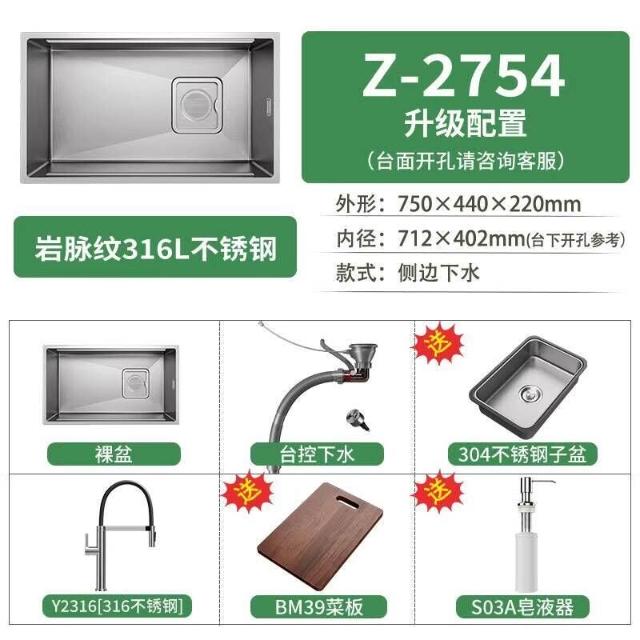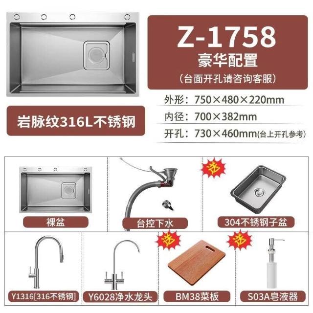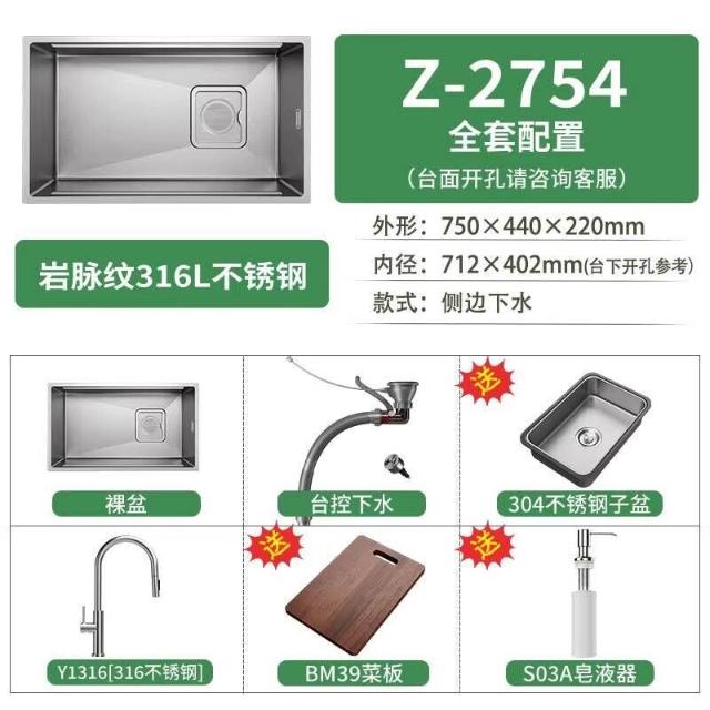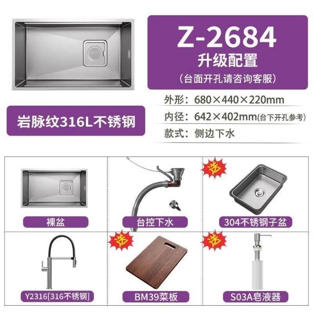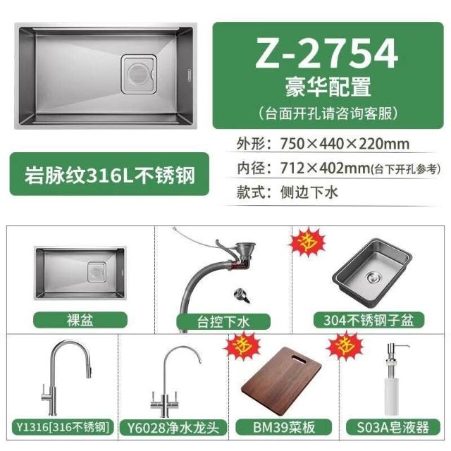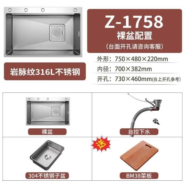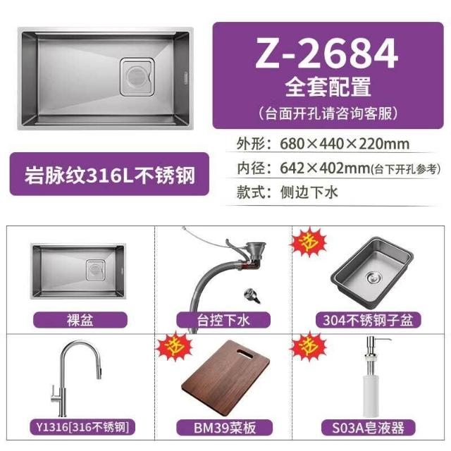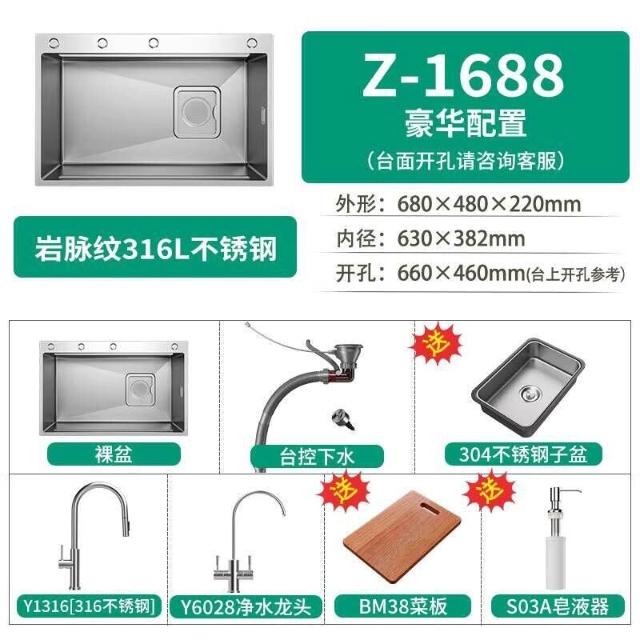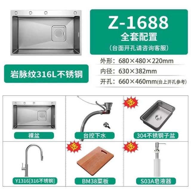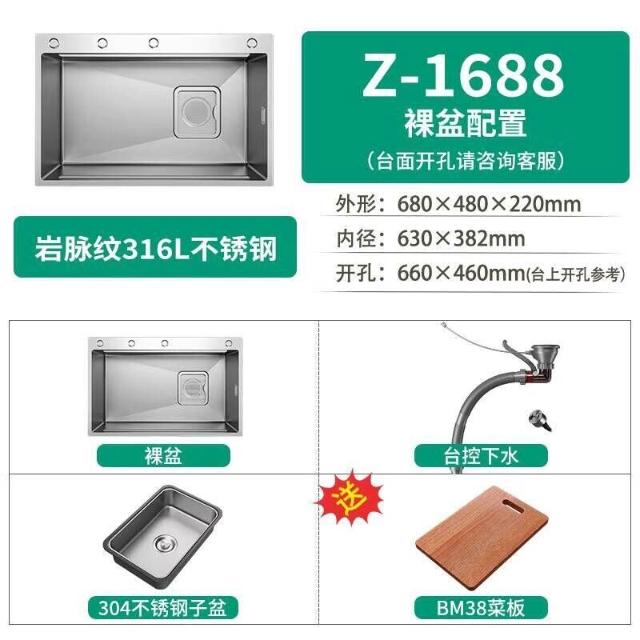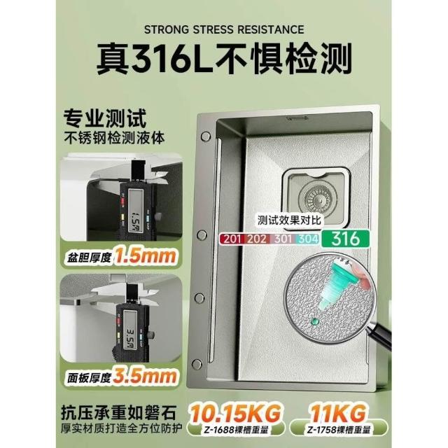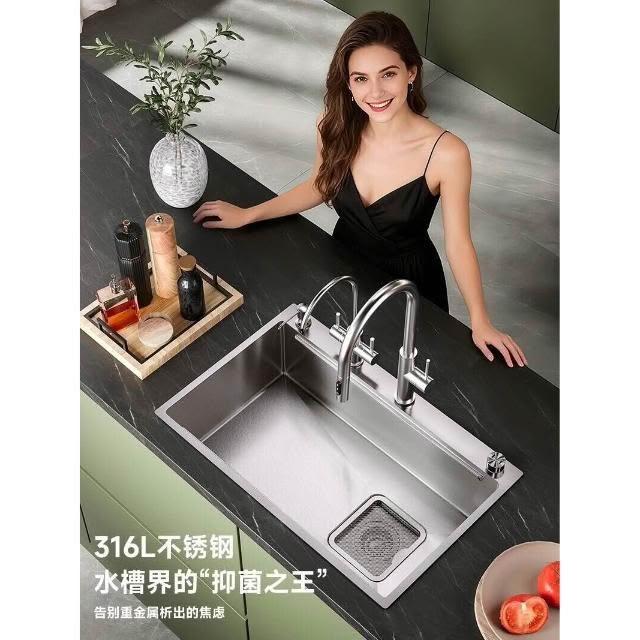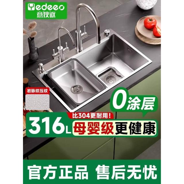 意大利意狄讴316L不銹鋼水槽大單槽廚房洗菜盆家用加厚水池1688