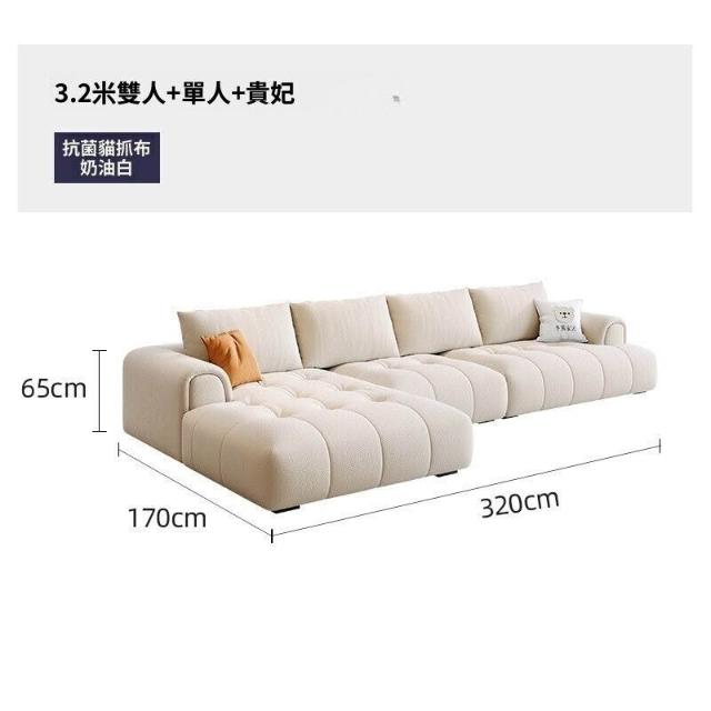 泡芙棉花糖貓抓布法式奶油風客廳現代簡約雲朵沙發布藝沙發