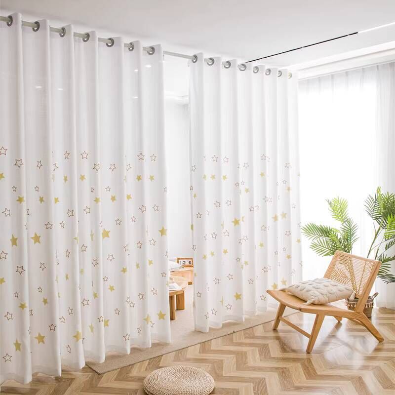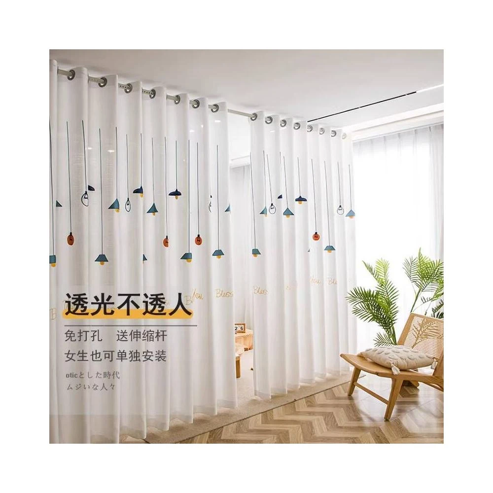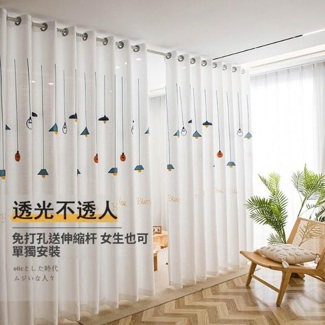 透光不透人紗簾免打孔安裝伸縮桿隔斷簾門簾遮擋簾遮光窗簾掛布料