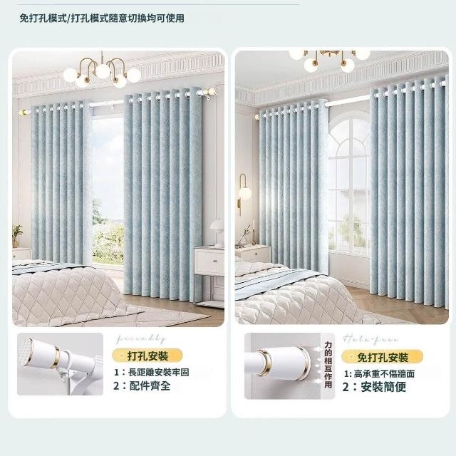 窗簾2026新款客廳遮陽全遮光布免打孔安裝臥室雪尼爾高級感飄窗布
