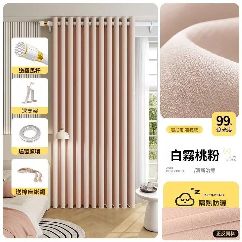 窗簾2026新款客廳遮陽全遮光布免打孔安裝臥室雪尼爾高級感飄窗布