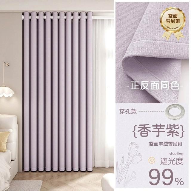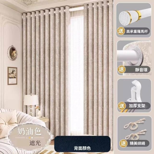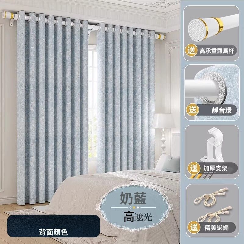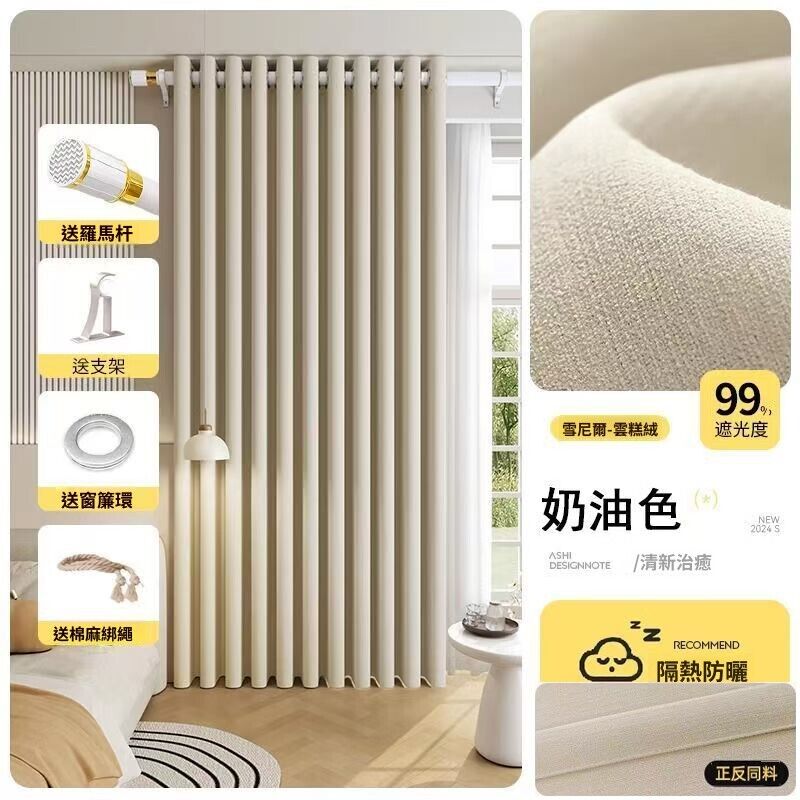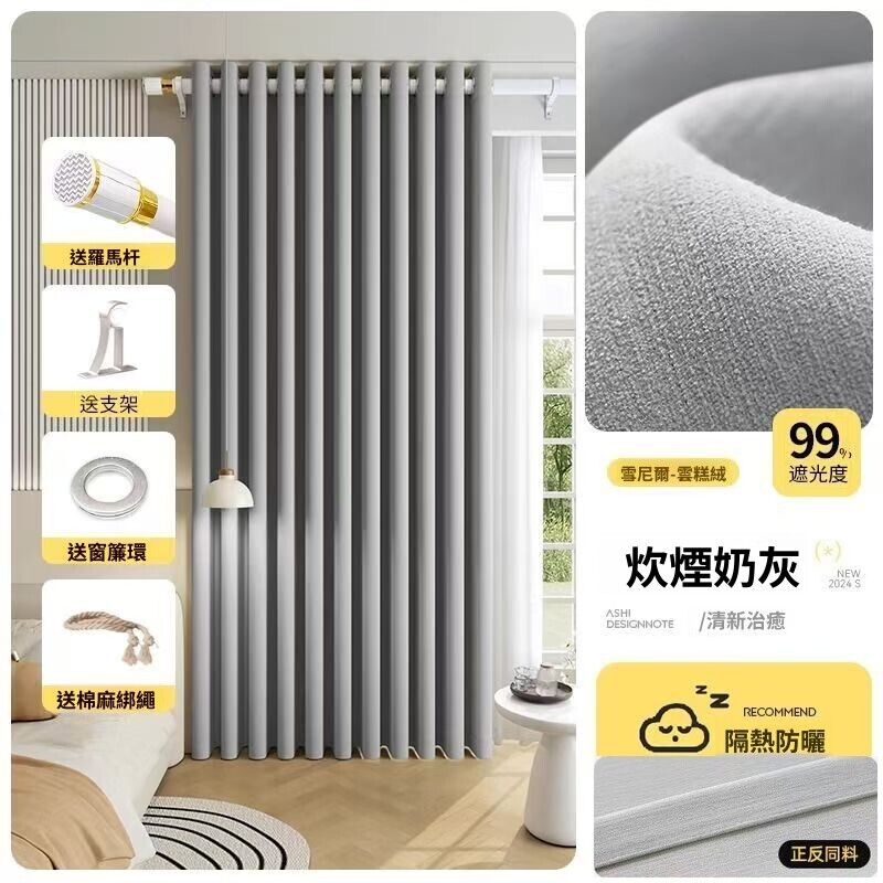 窗簾2026新款客廳遮陽全遮光布免打孔安裝臥室雪尼爾高級感飄窗布