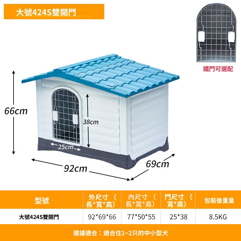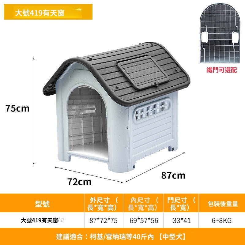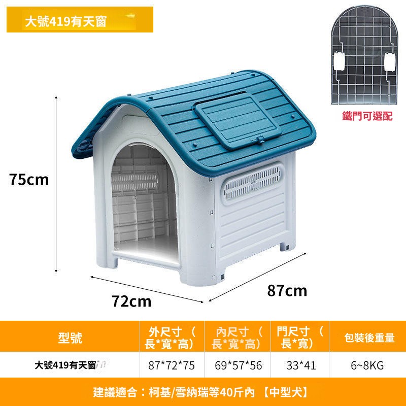 免運塑膠狗籠 不鏽鋼門+開天窗超通風 塑膠狗屋 狗房子 寵物柵欄 寵物籠 運輸籠 別墅狗籠塑料狗屋 防水狗 狗窩