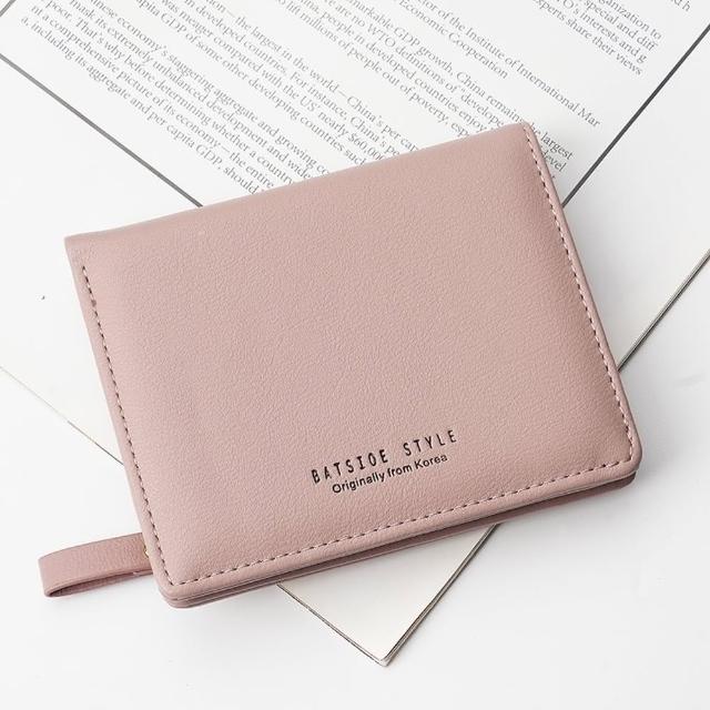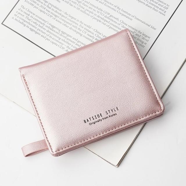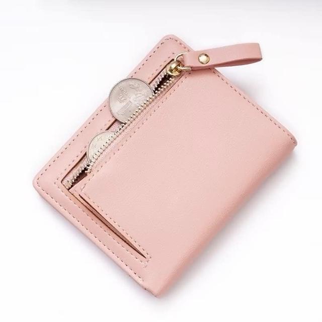 可愛淡粉色 短款女生錢包 短夾 簡約多卡位皮夾