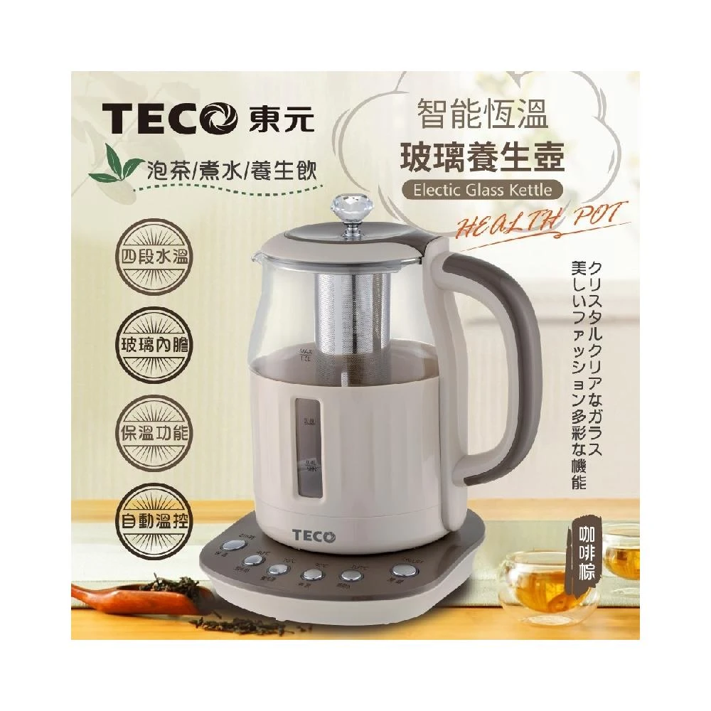 TECO 東元智能恆溫玻璃電熱 養生壺/快煮壺/電水壺 (XYFYK1501) 電茶壺 泡茶機