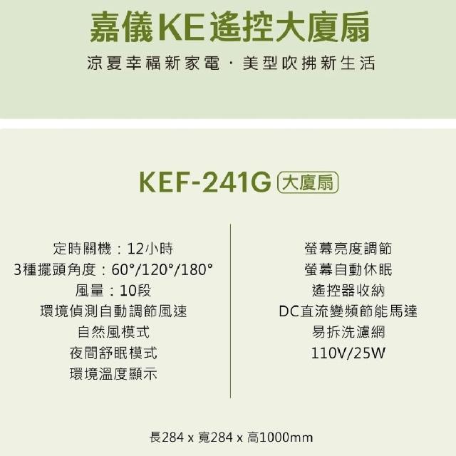 嘉儀DC直流變頻遙控大廈扇 (KEF-241G) 霧銀灰|預約定時/多角度擺頭/10段風量