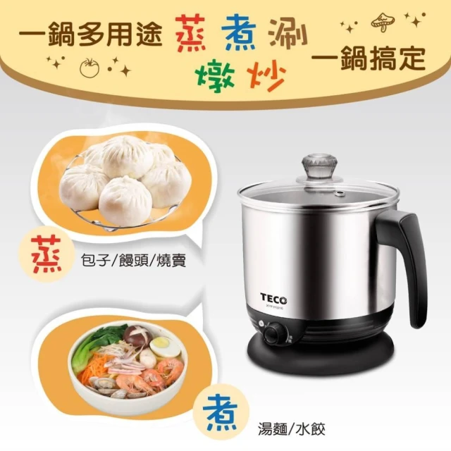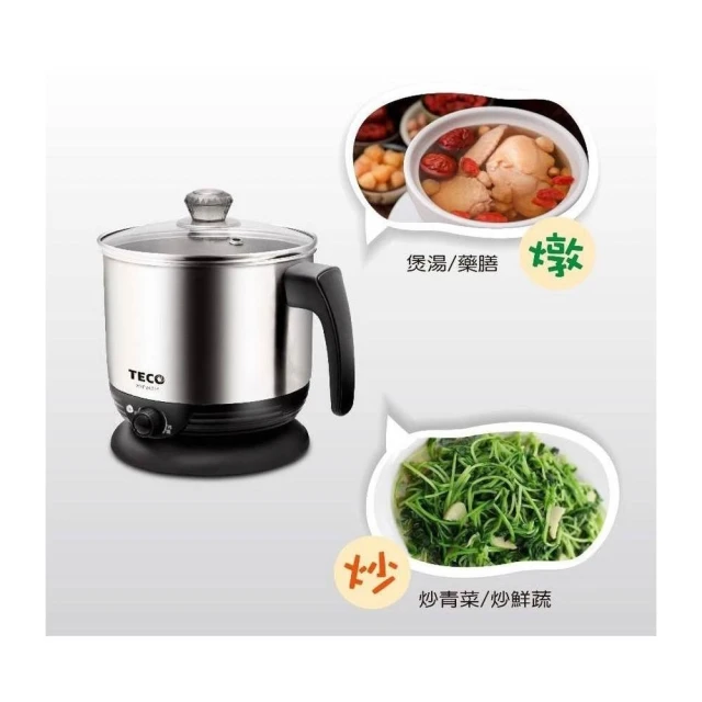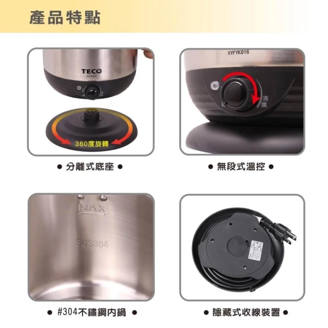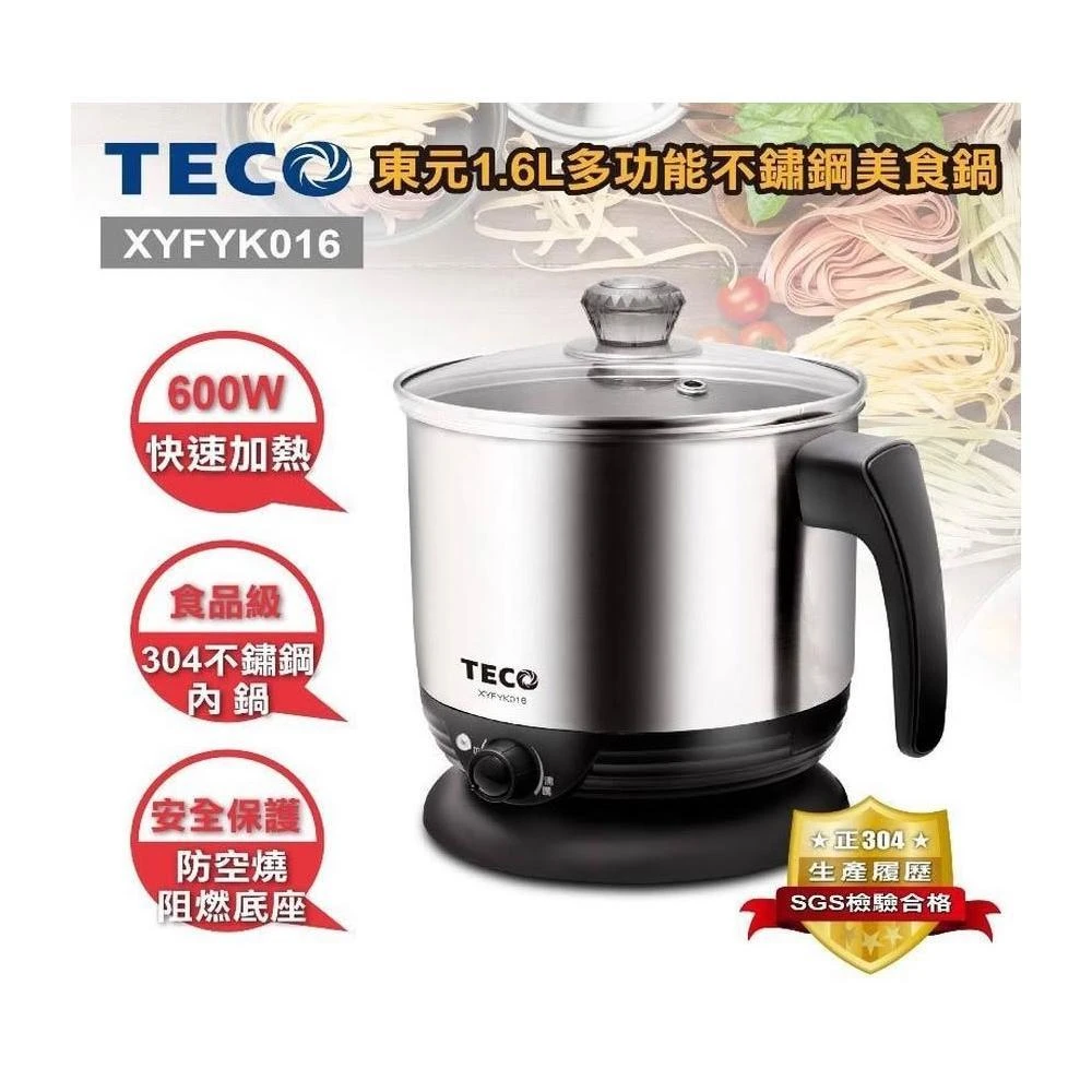 TECO 東元1.6L多功能不鏽鋼美食鍋 (XYFYK016) 推薦600W快速加熱