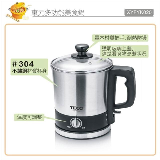 TECO 東元1.2L多功能不鏽鋼美食鍋 (XYFYK020) 快煮鍋 個人鍋 宿舍小火鍋(快煮美食)