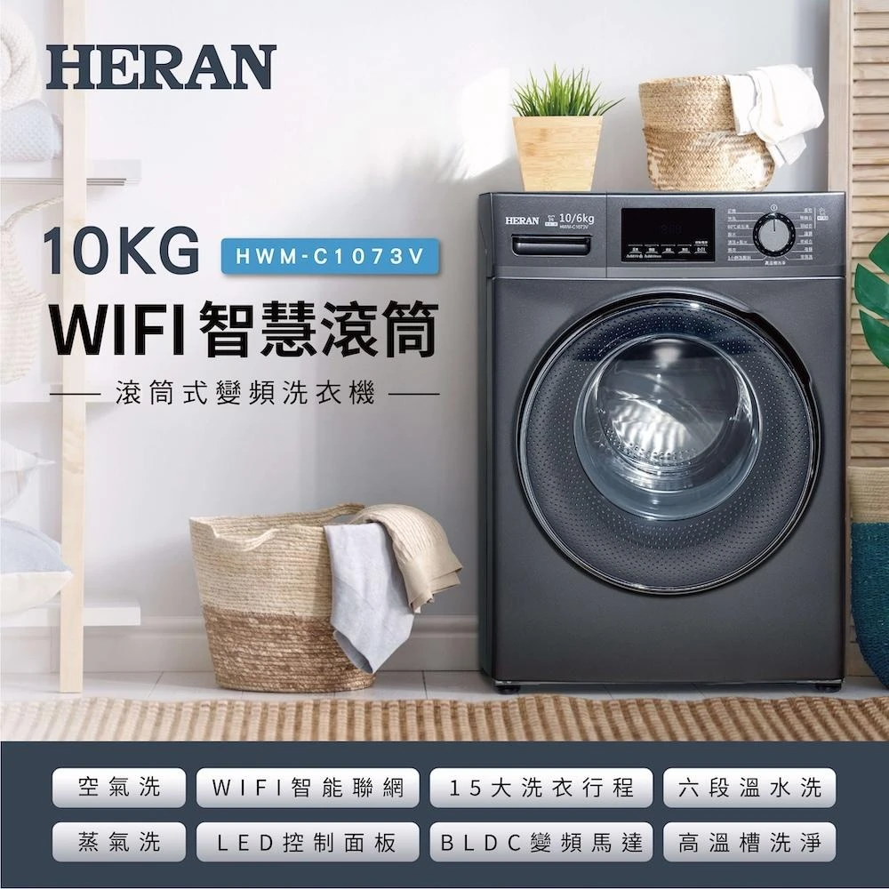 HERAN 禾聯10KG 變頻WIFI智慧蒸氣洗脫烘滾筒洗衣機 (HWM-C1073V) 基本安裝