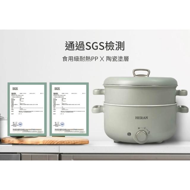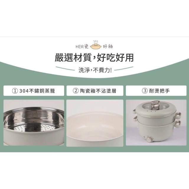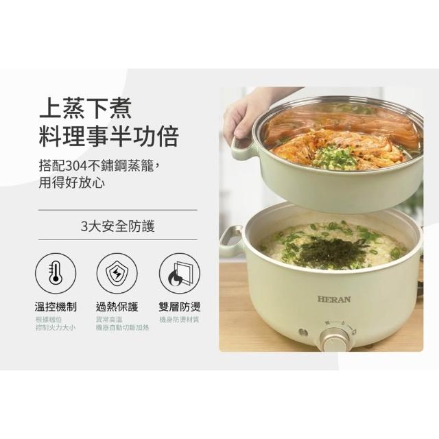 HERAN 禾聯3L料理美食蒸煮陶瓷電火鍋-附不鏽鋼蒸籠 (HHP-10SP01S) 電火鍋 快煮鍋 蒸鍋