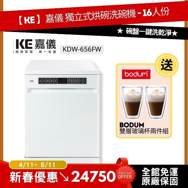 嘉儀獨立式烘碗洗碗機 (KDW-656FW)-16人份110V|碗盤一鍵洗乾淨 不用再手洗