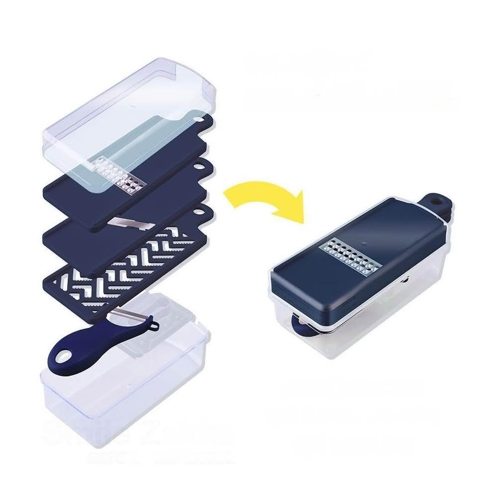 日本製 燕三良品 多用途廚房刨絲切片器七件組合(2刀片+磨泥器+削皮刀+護手器+盒蓋+調理盒) 逸品物創