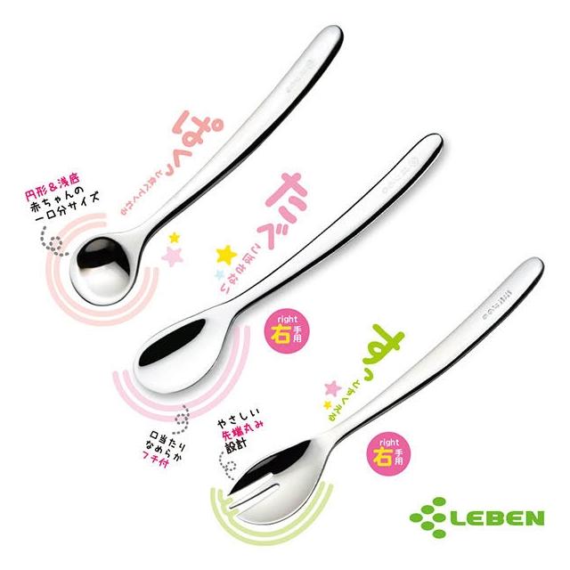 LEBEN日本製 LEBEN 不鏽鋼幼兒餐具3入組(右手) 學習餐具 兒童餐具