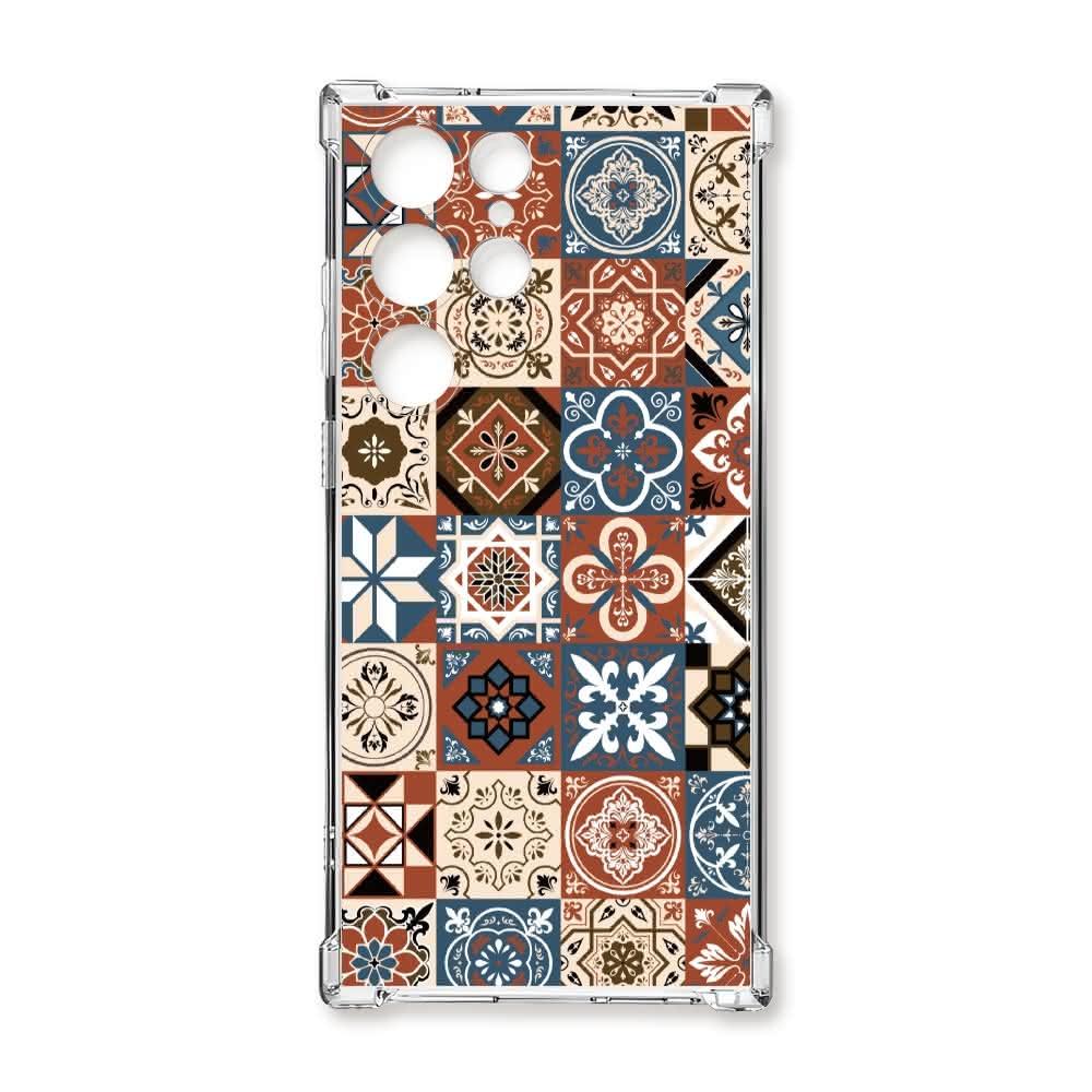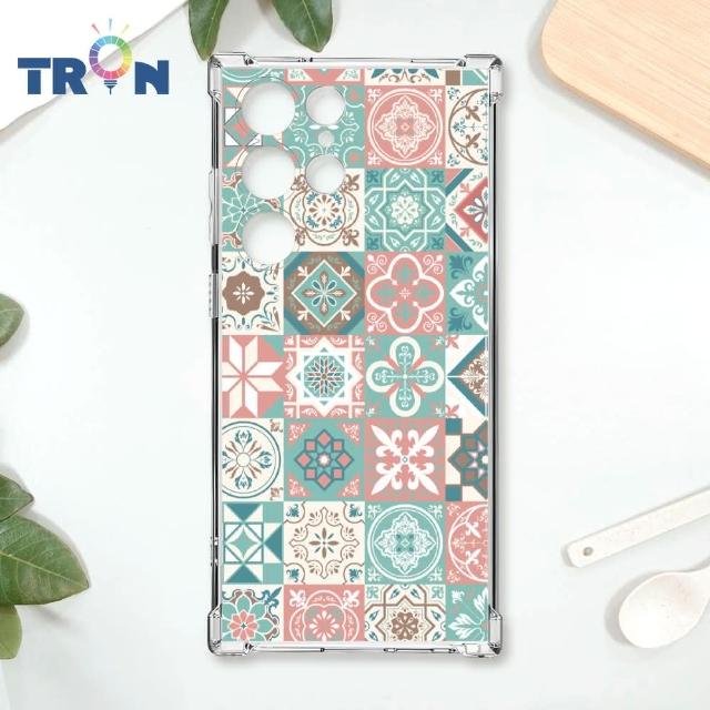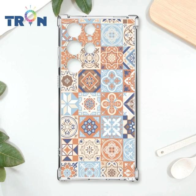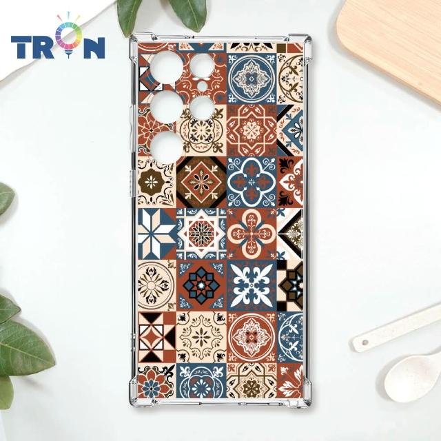 TRONTRON 三星 S23 Ultra 北歐風幾何復古花磚 四角防摔 軟殼 手機殼