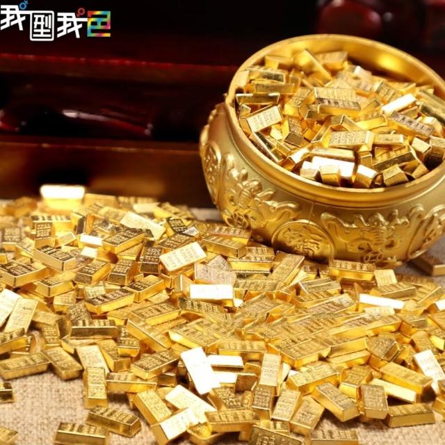 迷你金條.爆款1cm小金條 實心元寶 聚寶盆擺飾 沙金條 招財令 金銀元寶 五帝錢