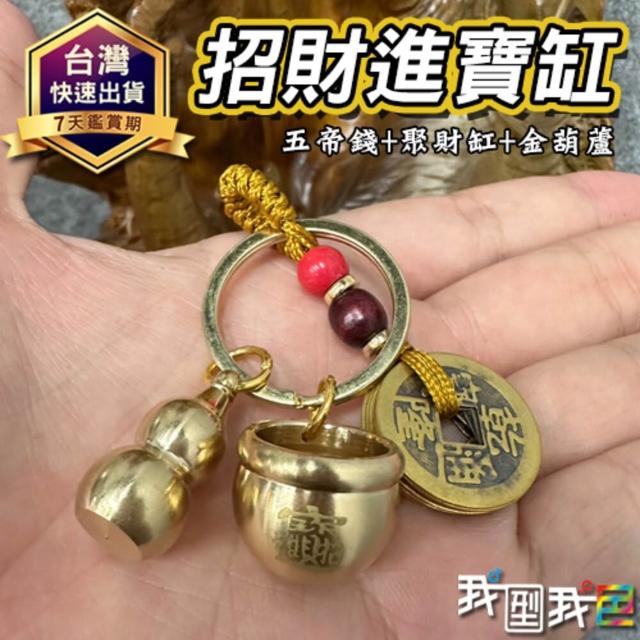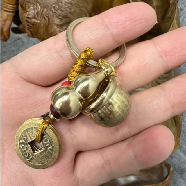 招財進寶金葫蘆米缸五帝錢加持招財守庫 黃銅鑰匙圈吊飾 汽車包包小掛件福袋
