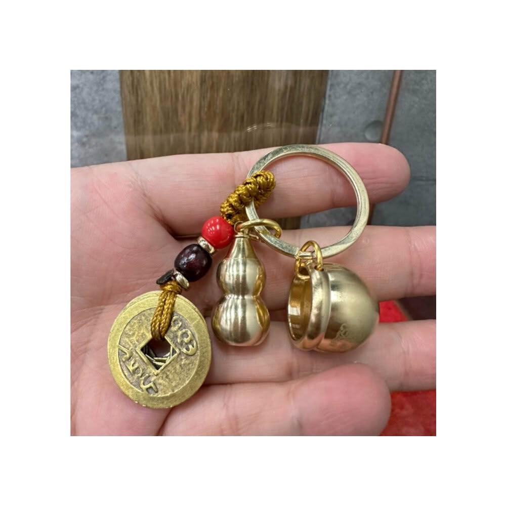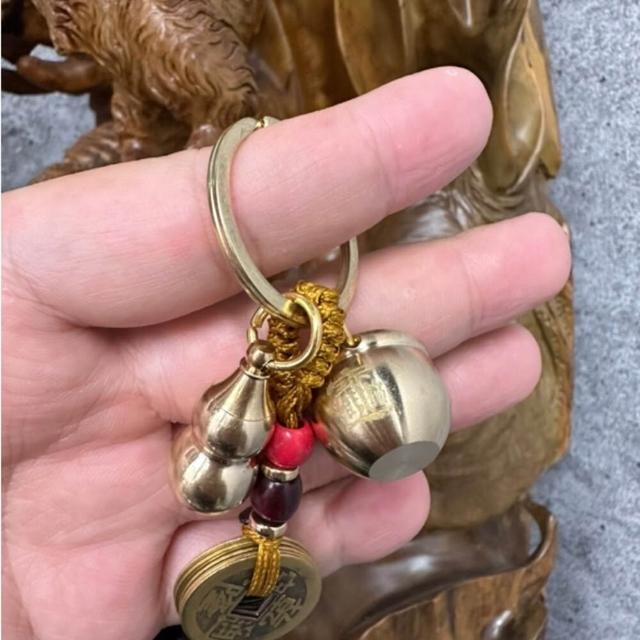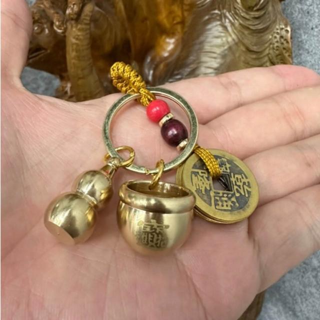 招財進寶金葫蘆米缸五帝錢加持招財守庫 黃銅鑰匙圈吊飾 汽車包包小掛件福袋