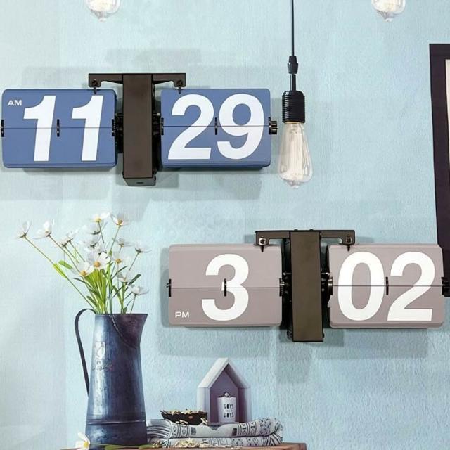 復古設計翻頁鐘大號款妙刻天秤鐘自動翻頁時鐘 金屬齒輪鐘創意機械鐘裝飾