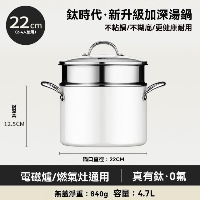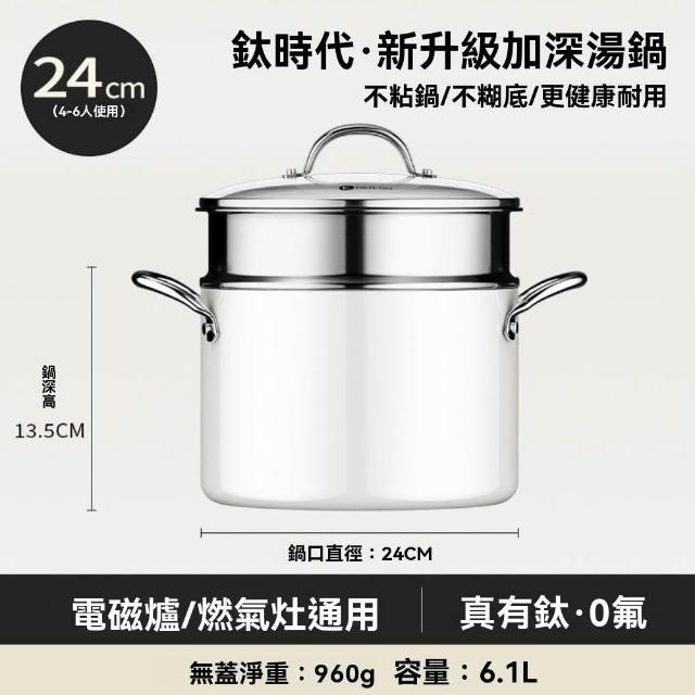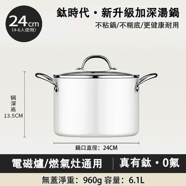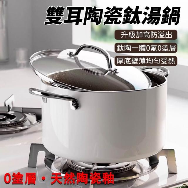 雙耳陶瓷鈦湯鍋 內鈦外陶 無塗層 加高防溢 厚底薄壁 爐竈通用(燉鍋/奶鍋)
