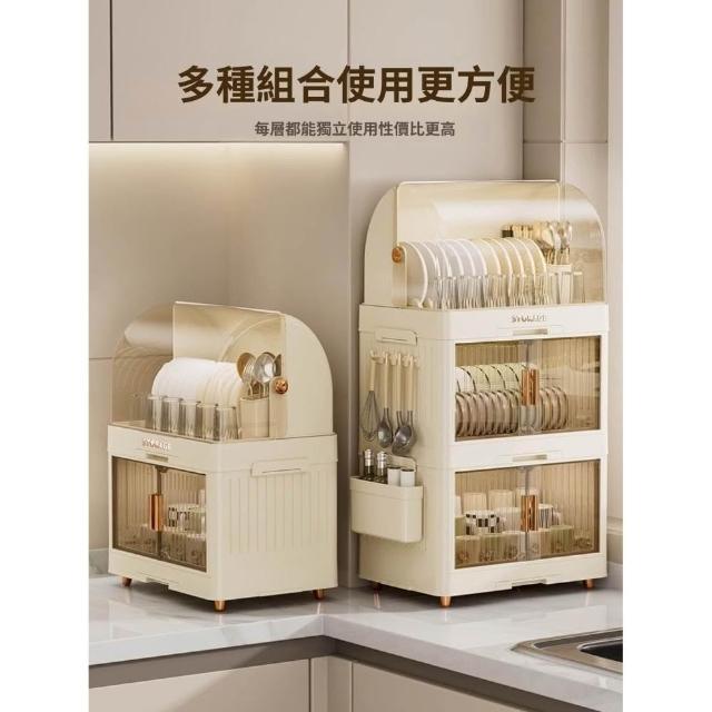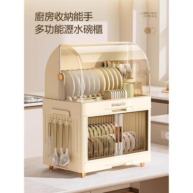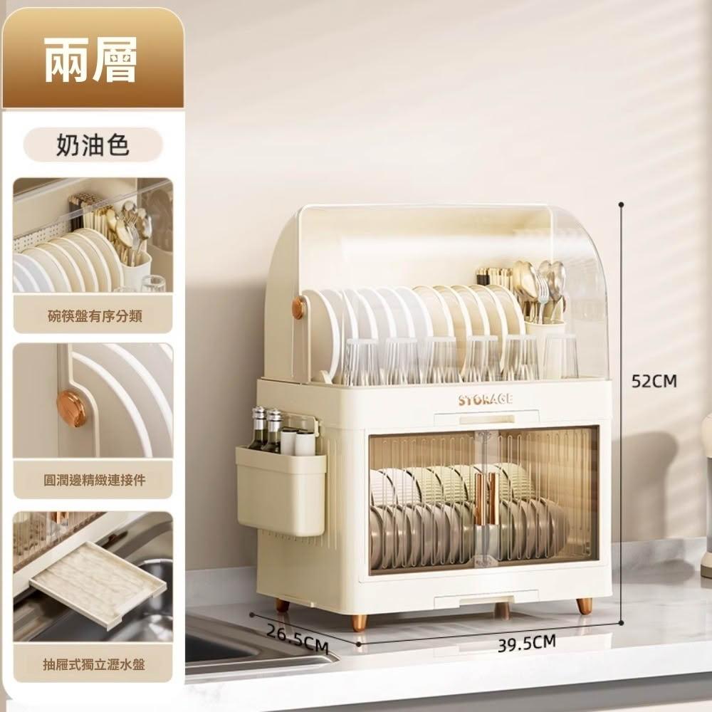 雙層碗筷收納櫃(碗櫃 雙層裝餐具 碗盤箱 放碗家用置物廚房碗架 瀝水碗碟架)