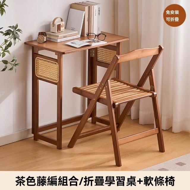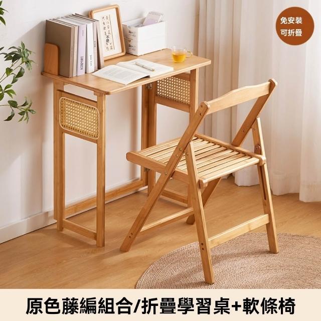 大城小居日式藤編摺疊學習桌椅組合 學生寫字書桌 辦公電腦桌
