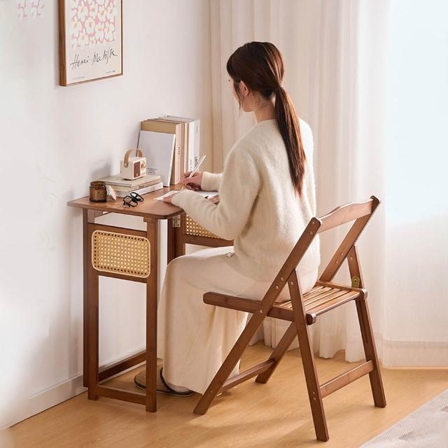 大城小居日式藤編摺疊學習桌椅組合 學生寫字書桌 辦公電腦桌