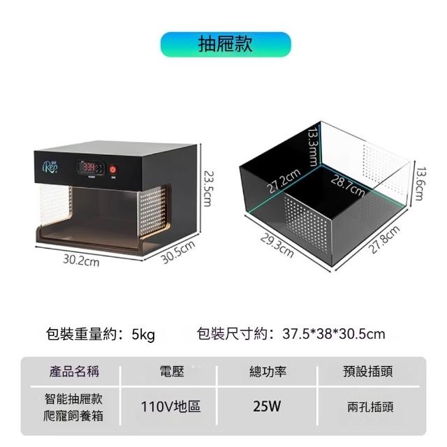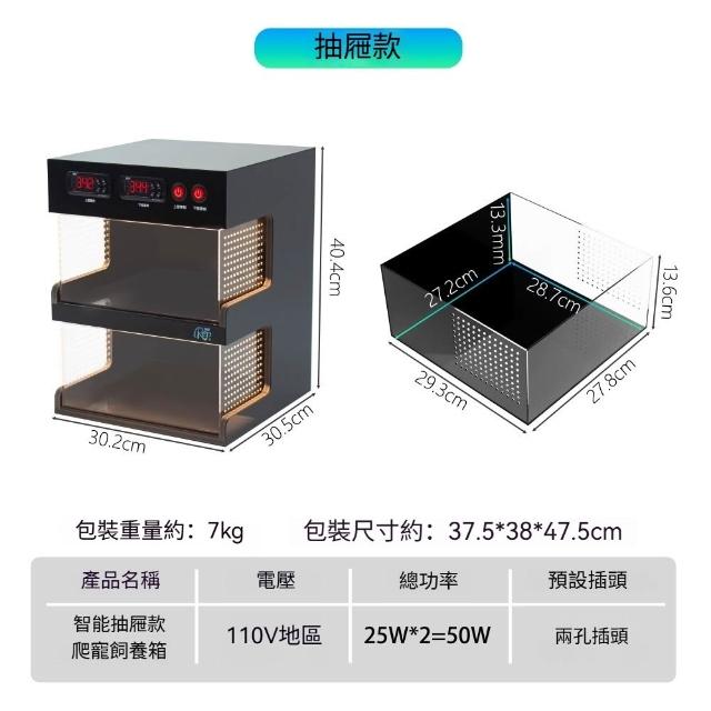 智能爬寵抽屜式飼養箱 冷熱分區 智能恆溫 精準温控 通風透氣 防越獄