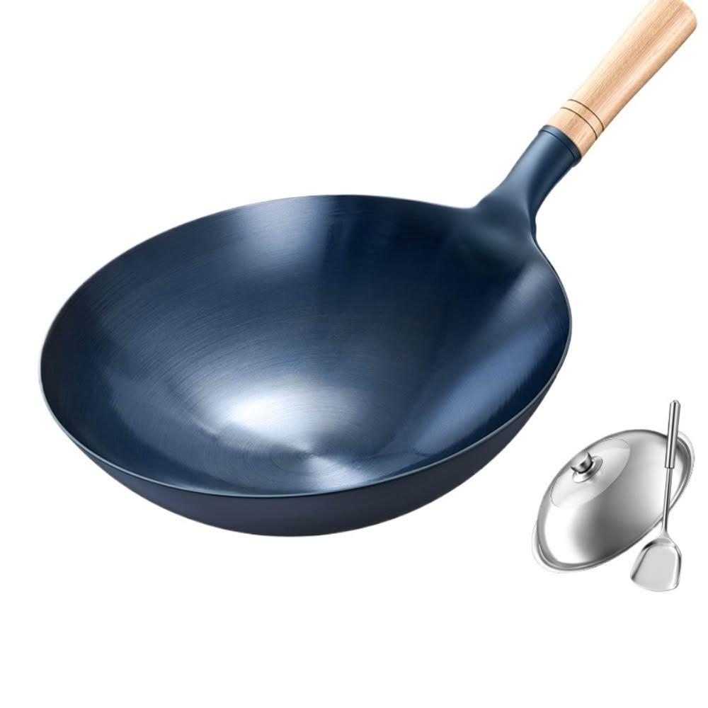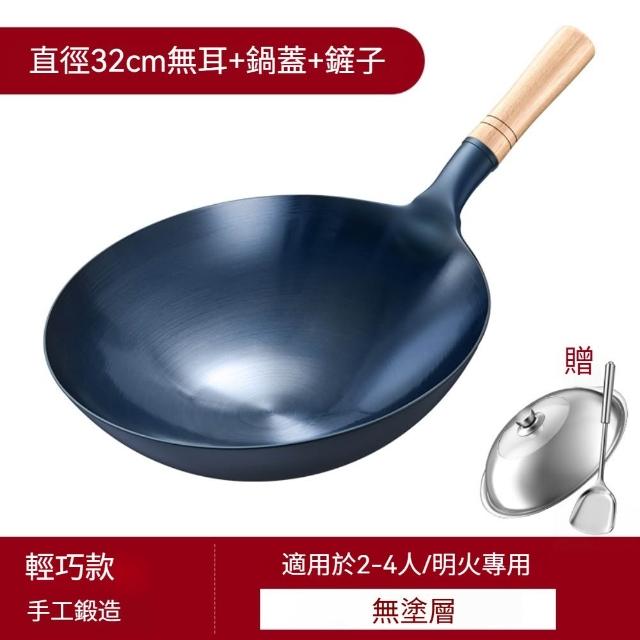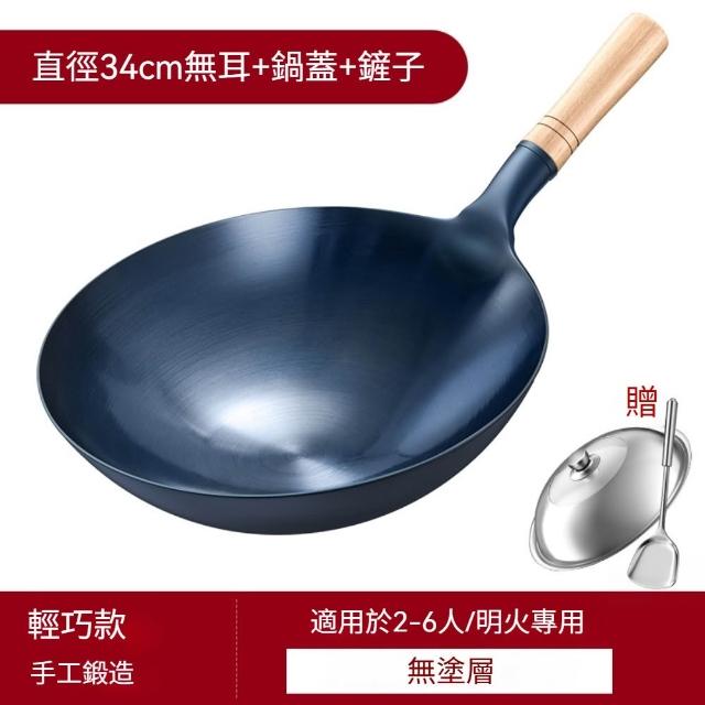 瓦斯爐專用炒鍋 鐵鍋 無塗層 帶蓋 明火專用 燃氣竈(32cm/34cm)