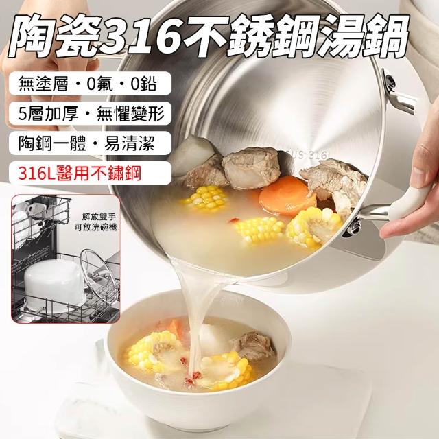 陶瓷316不銹鋼湯鍋 煮粥煲湯專用鍋 22/24/26cm