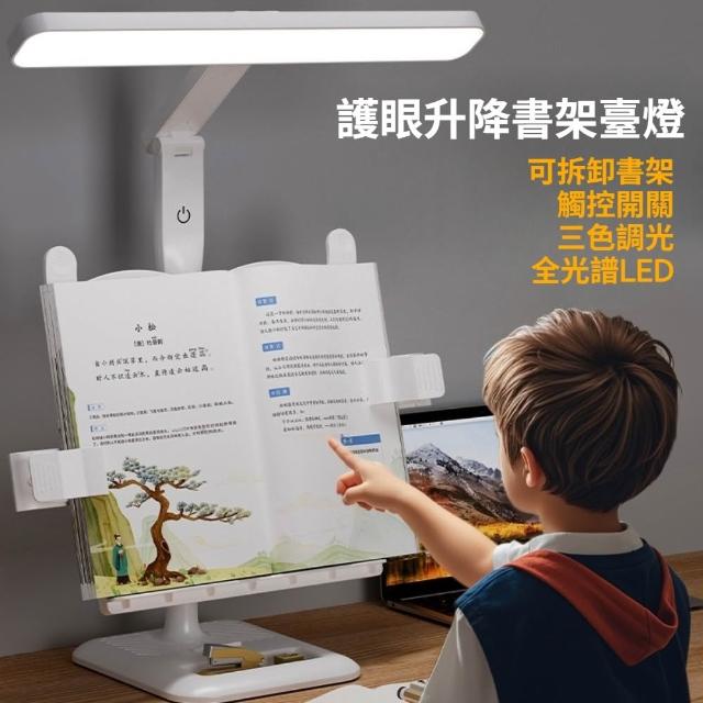 護眼升降書架臺燈 全光譜LED閱讀燈 三色光 帶書架 無可視頻閃(學生閱讀學習燈/書房檯燈)