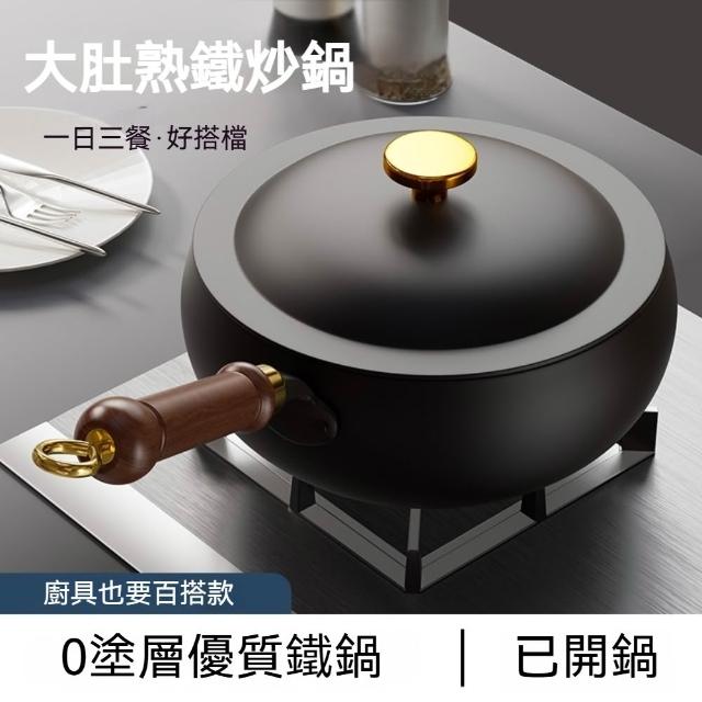 大肚熟鐵炒鍋 無塗層不粘鍋 免開鍋 爐具通用(炒鍋/煎鍋/大肚鍋)