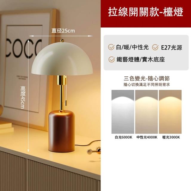 法式復古實木臺燈 三色變光 拉鏈開關+實木底座(檯燈/床頭燈/桌燈)