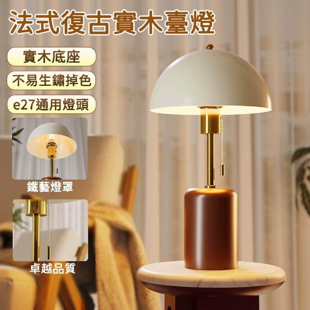 法式復古實木臺燈 三色變光 拉鏈開關+實木底座(檯燈/床頭燈/桌燈)