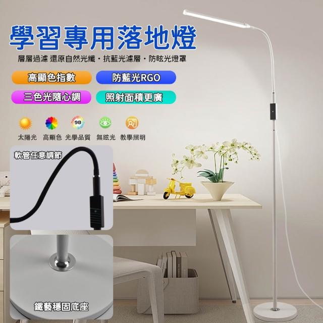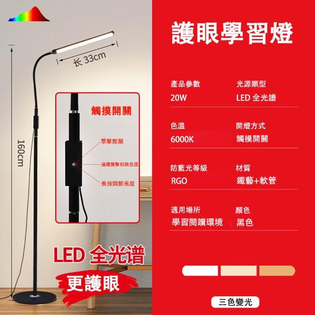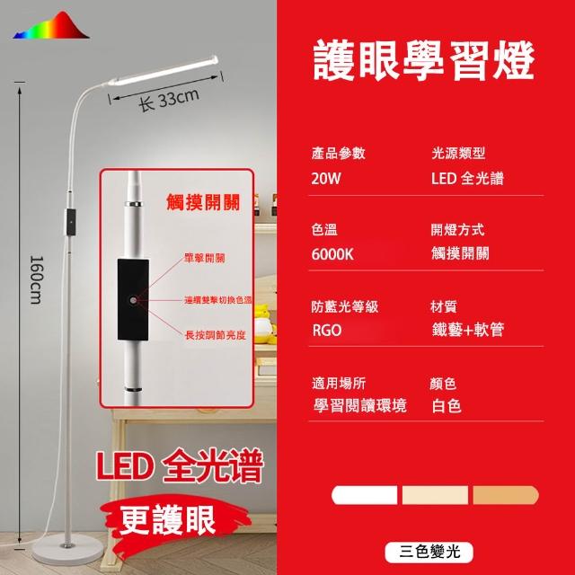 學習專用落地燈 全光譜LED立燈 三色調光 觸控開關 燈頭可調節