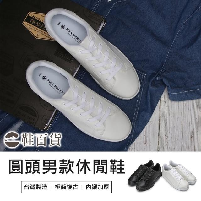 鞋百貨 富發牌 復古圓頭男款休閒鞋 男鞋 台灣製造 情侶鞋 綁帶鞋 小白鞋 平底鞋 運動休閒鞋 全黑鞋 輕量鞋