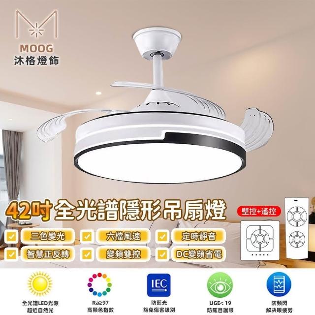 MOOG 沐格48吋隱形吊扇燈 led臥室風扇燈 四葉智慧電風扇 現代客廳變頻吊扇 北歐吊燈 120W電扇燈風扇