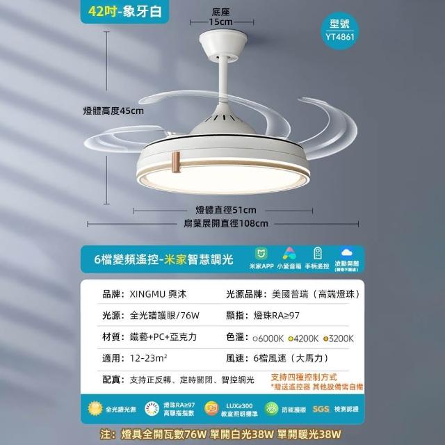 XINGMU 興沐吊扇燈 客廳隱形吊扇燈 全光譜LED吊燈風扇 北歐大氣簡約餐廳吊扇 120W吊燈 靜音電風扇循環扇