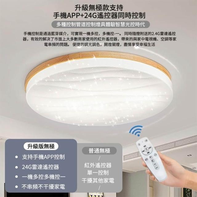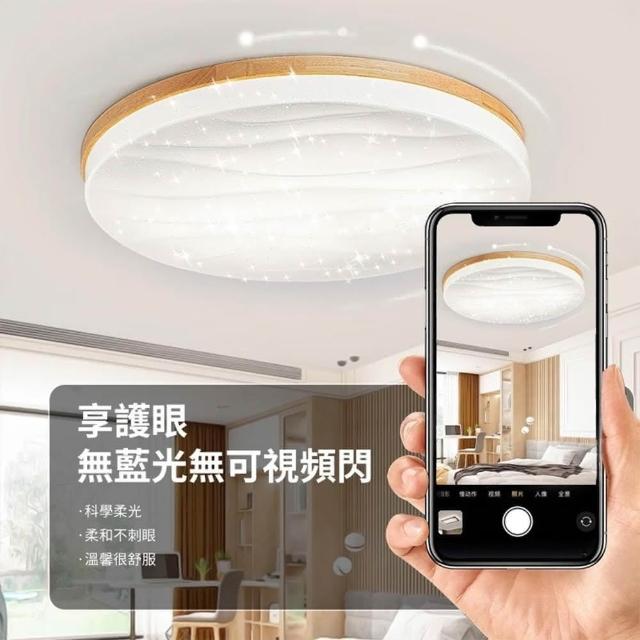 XINGMU 興沐(福利特惠價)吸頂燈 北歐原木日式吸頂燈 簡約現代客廳臥室燈 創意圓形吸頂燈 led木紋星空燈 附遙控