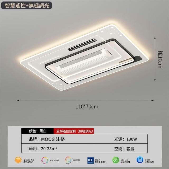 MOOG 沐格風扇燈 無葉吊扇燈 客廳長方形吸頂燈風扇 全光譜led書房燈 輕奢簡約客廳燈臥室燈 靜音循環電風扇