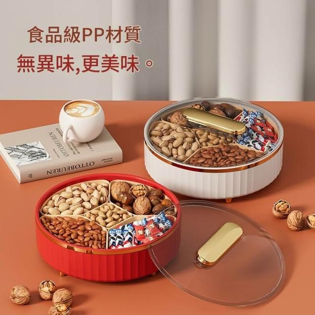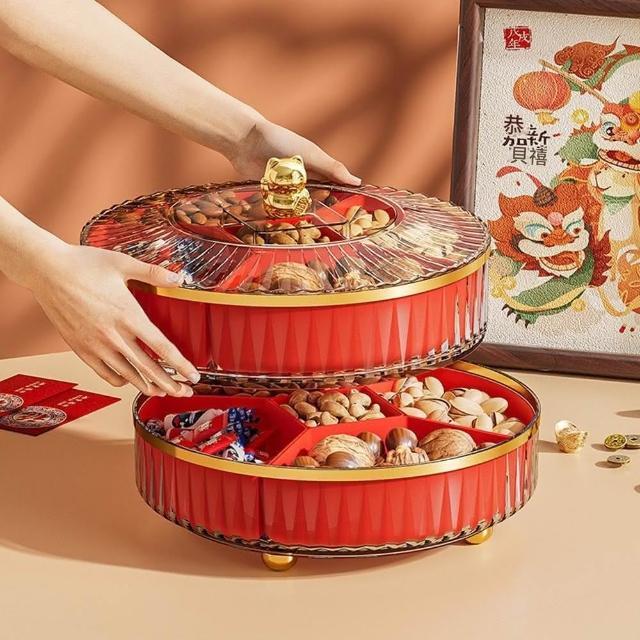 XINGMU 興沐客廳創意果盤喜慶 家用分格帶蓋零食幹果盒 可旋轉點心水果盤糖果盒